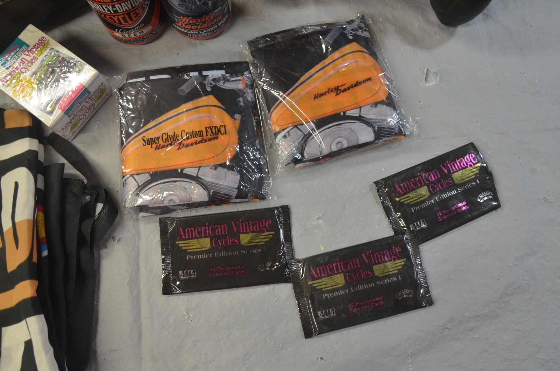 Harley Davidson Collection- Piggy Teddy, Beer Cans, Cards, Bike Packs
