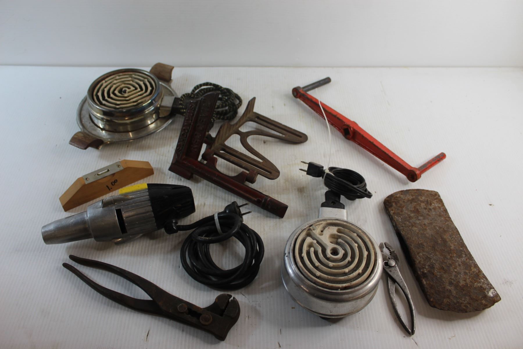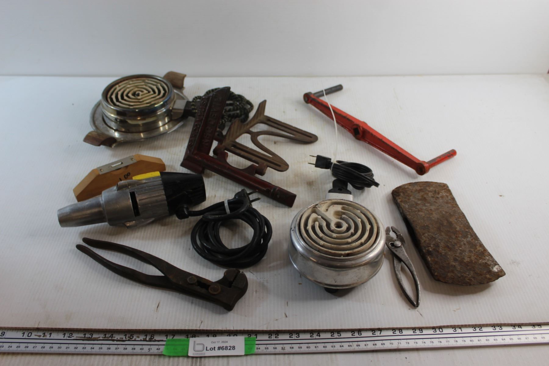 Heating Bases, Axe Head, Electric Screwdriver, Lock Jaw Pliers and Misc.