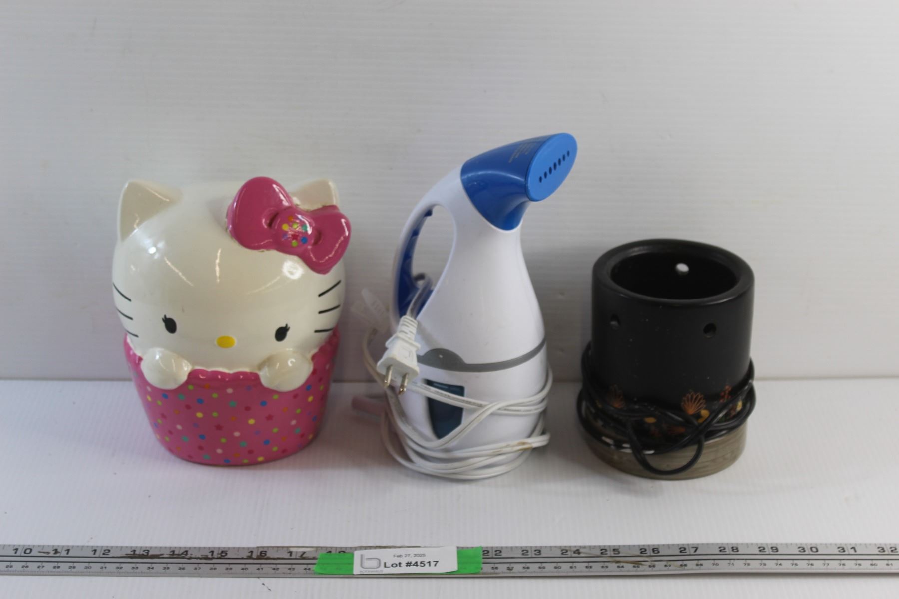 Hello Kitty Coin Bank, Conair Steamer - Powers On, As Is and Desk Lamp - As Is