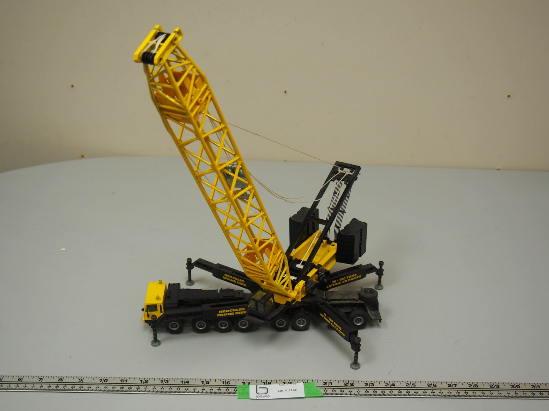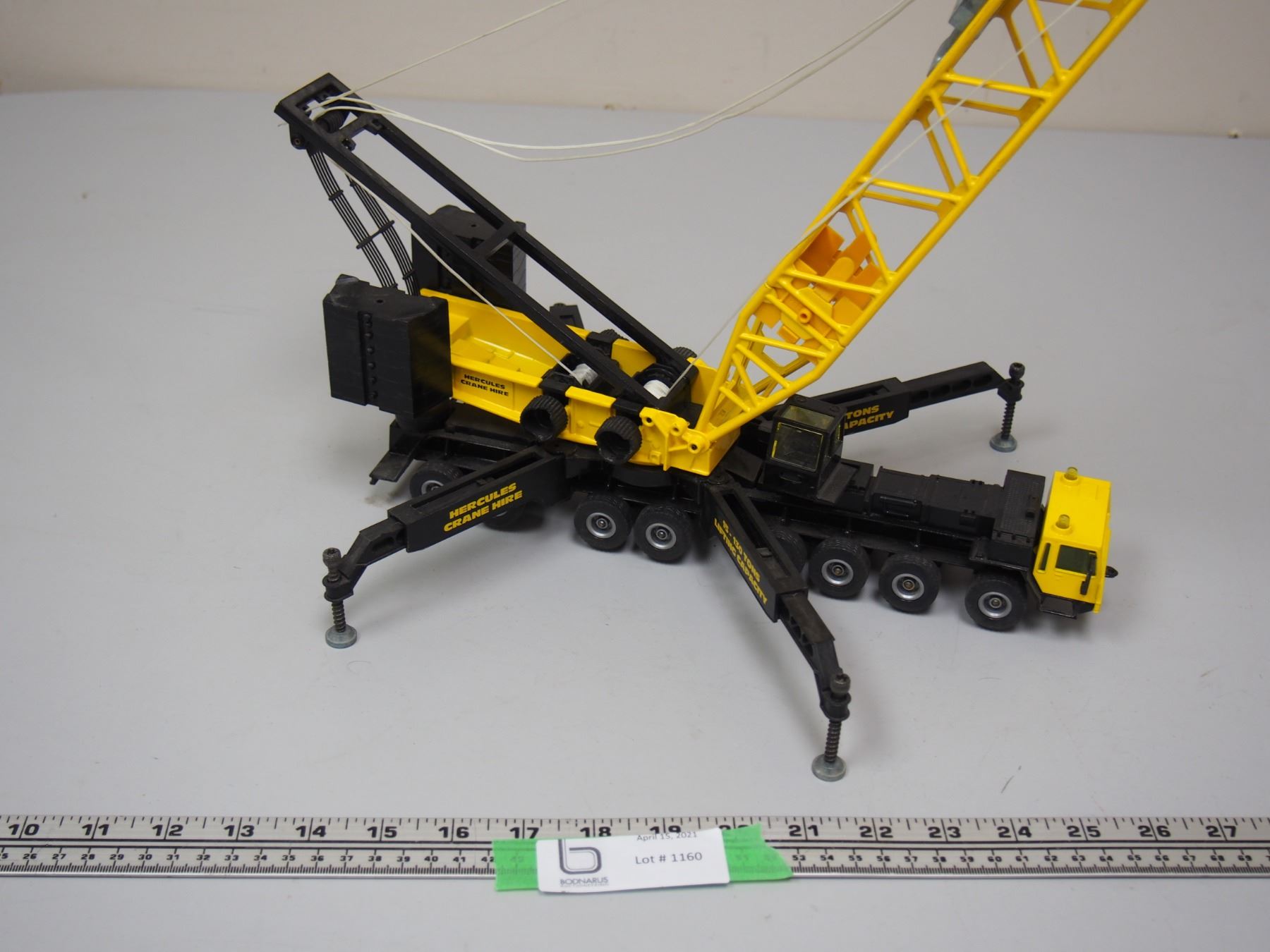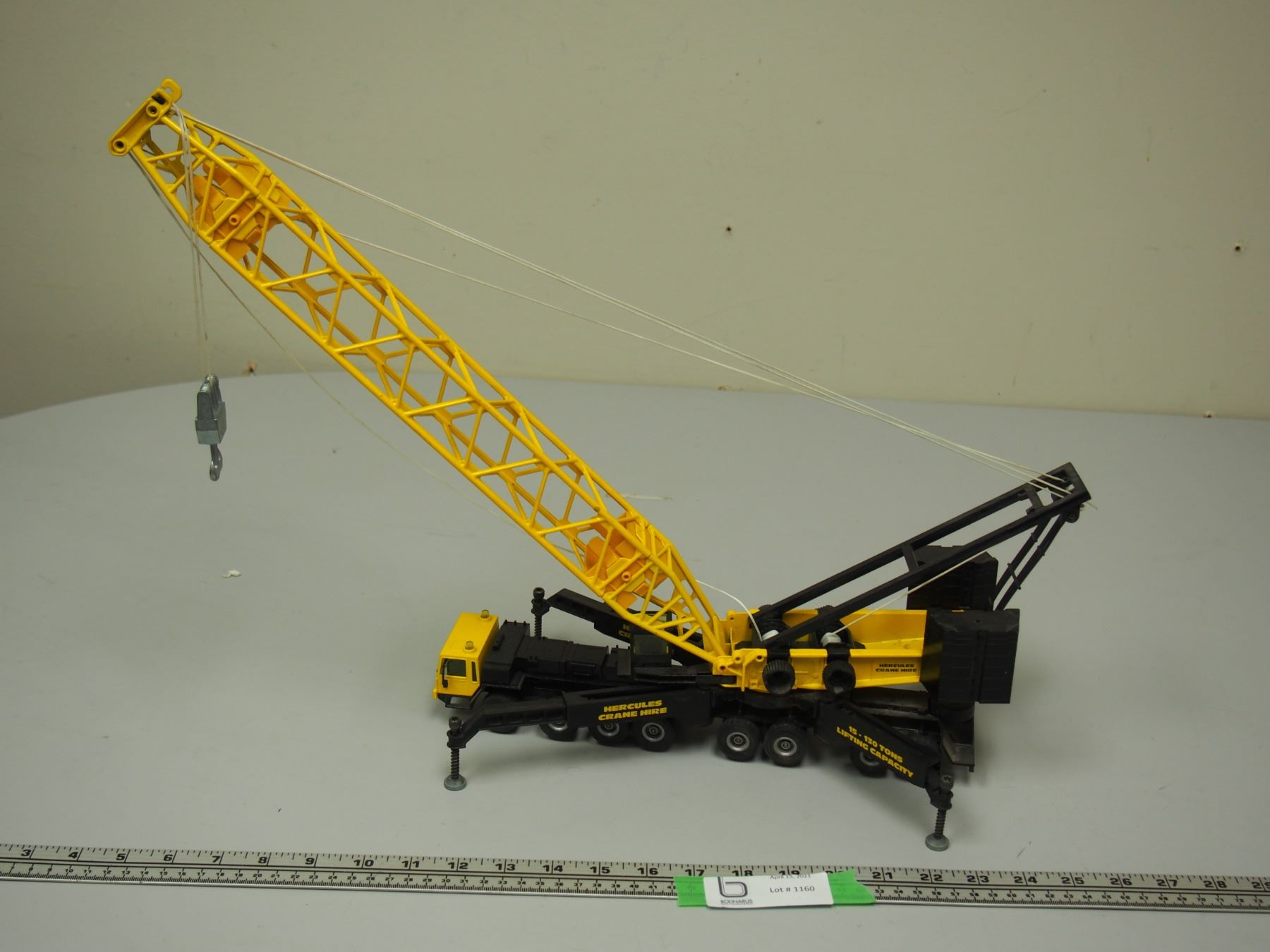 Hercules Crane Hire Truck Lattice Crane Yellow (1/55 Scale?) (20" Tall Truck Is 13" long)