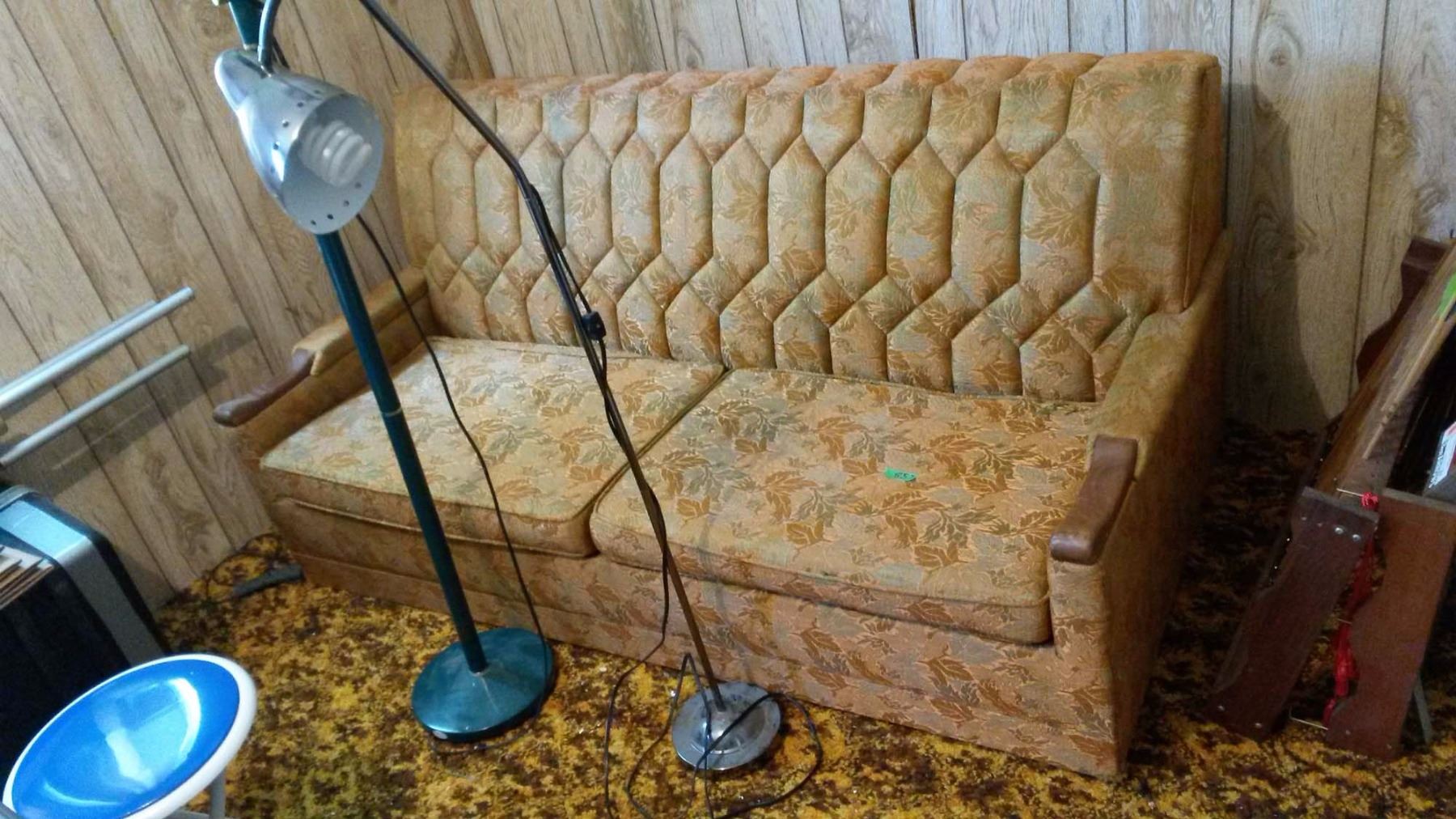 Hide-A-Bed Couch & Lamps (2)