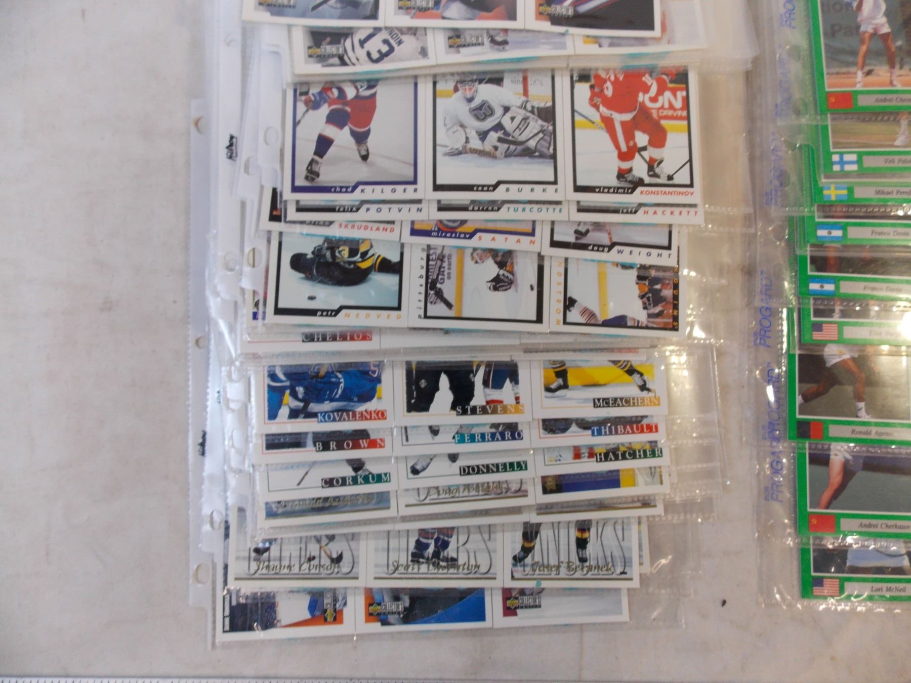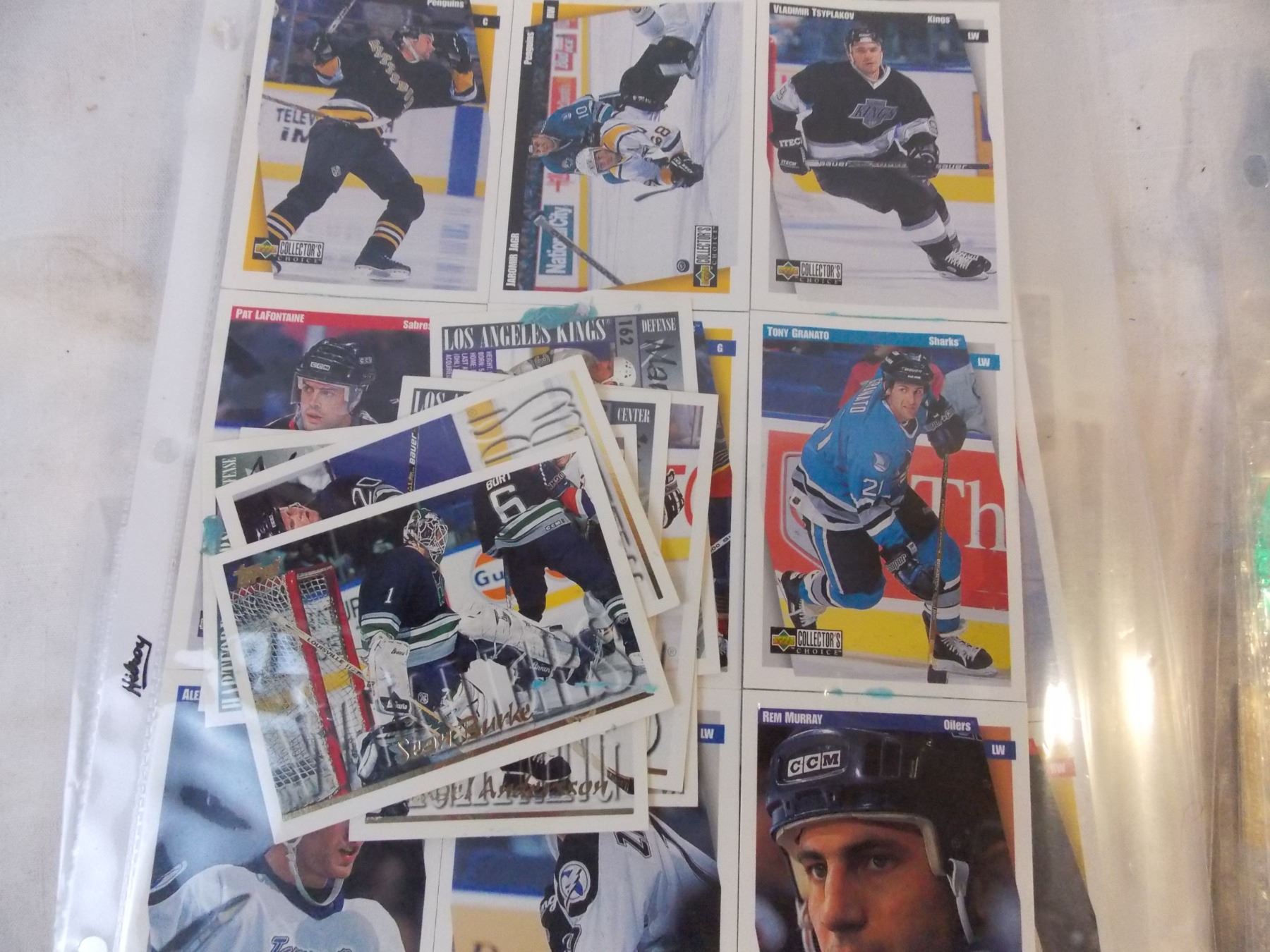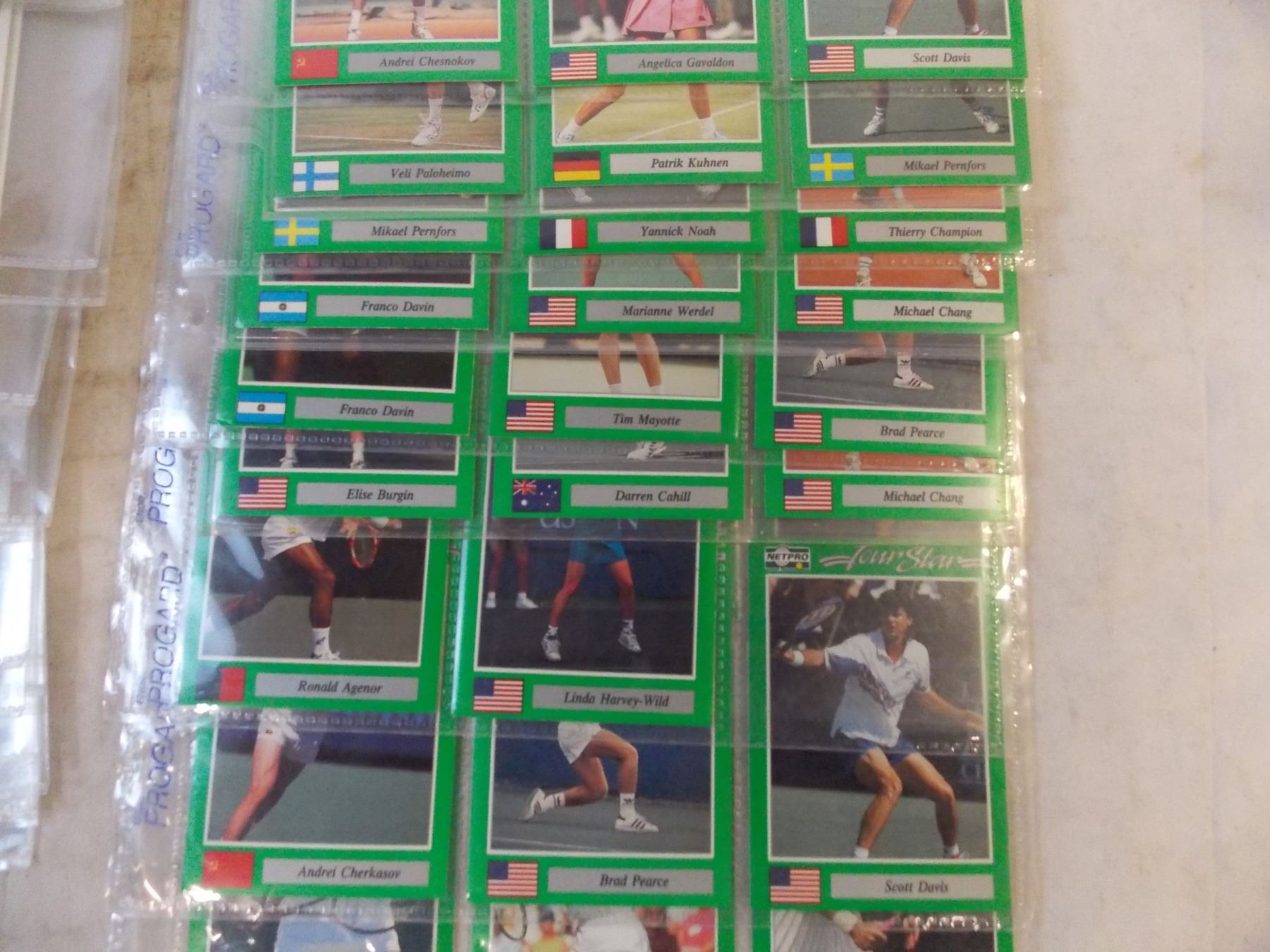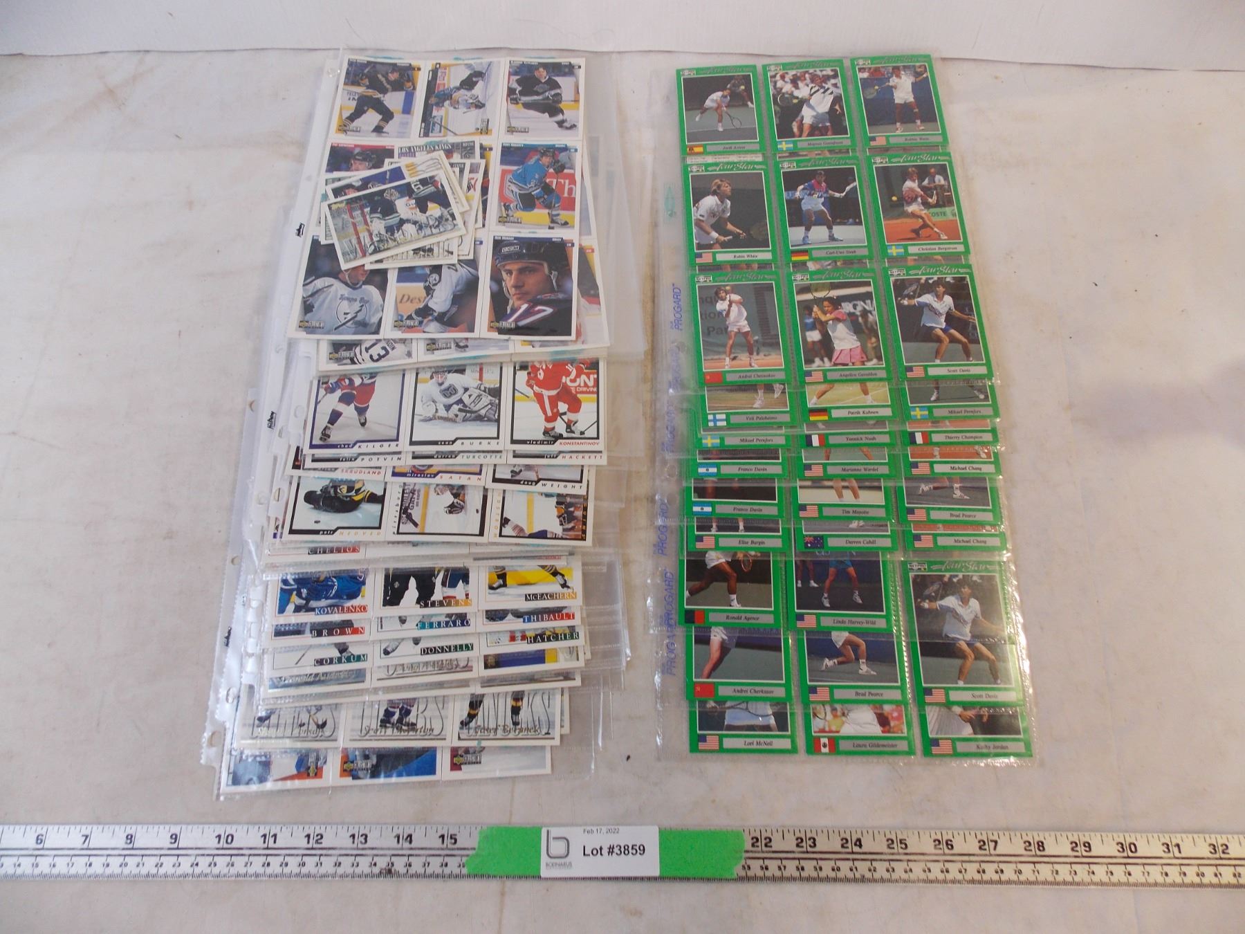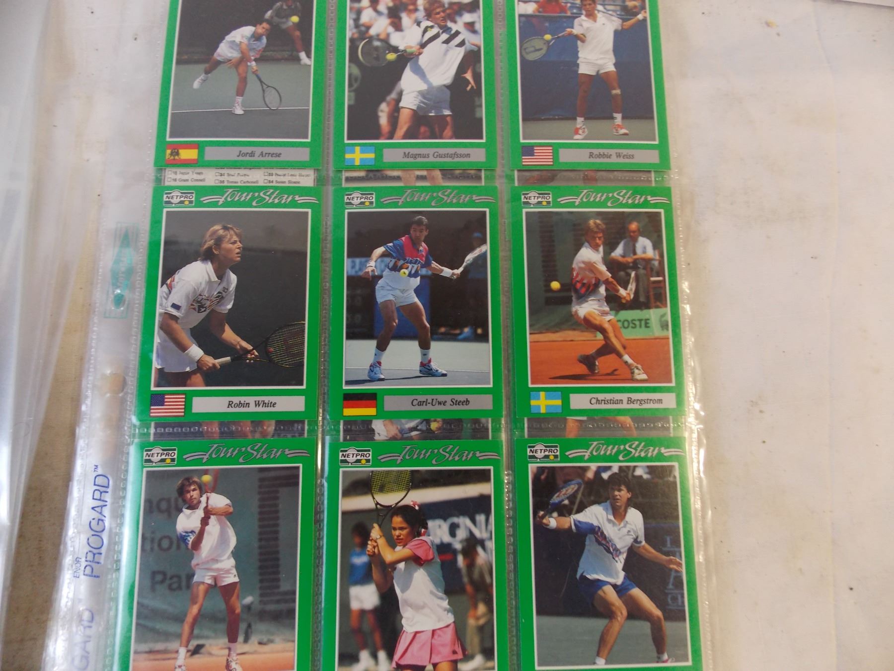 Hockey and tennis cards in sleeves - hockey cards have blue tac on them all
