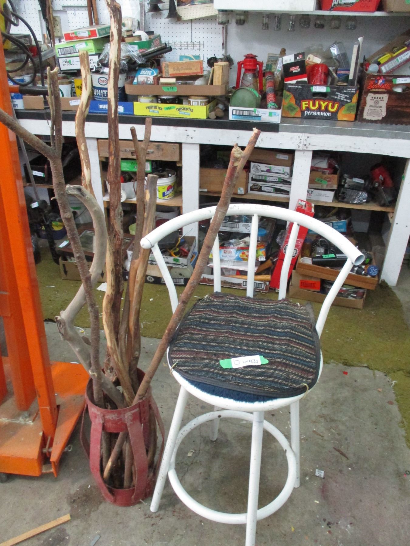 Holder with Willow Sticks, Swivel Barstool