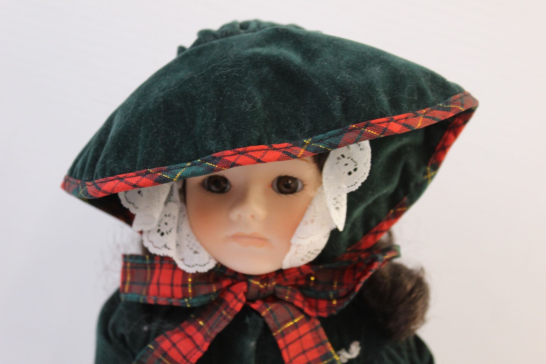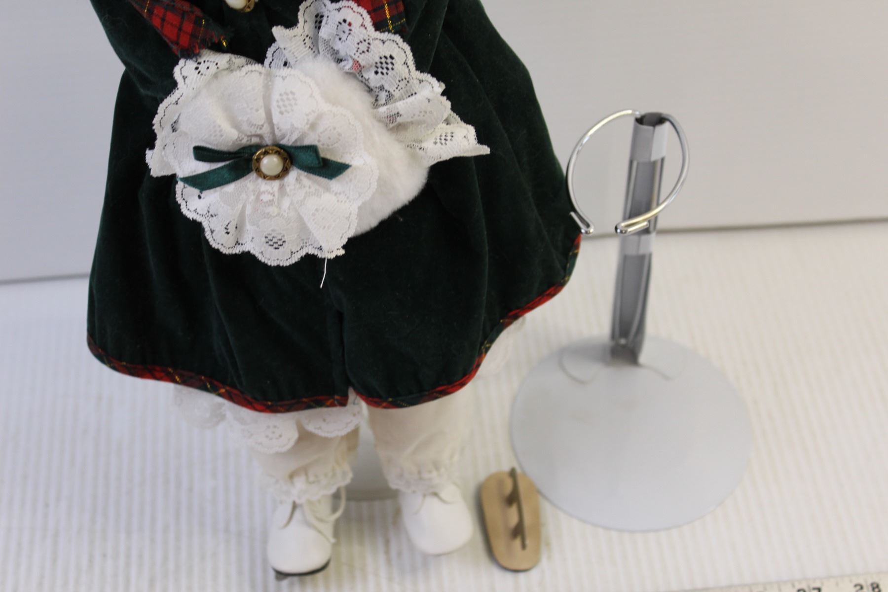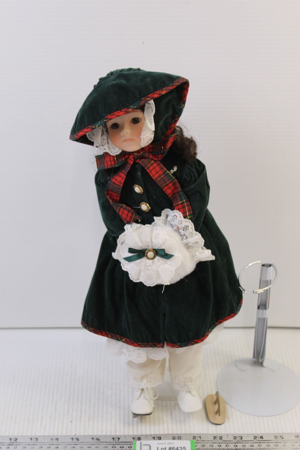 Holiday Christmas Porcelain Doll With Stand Broken Foot
