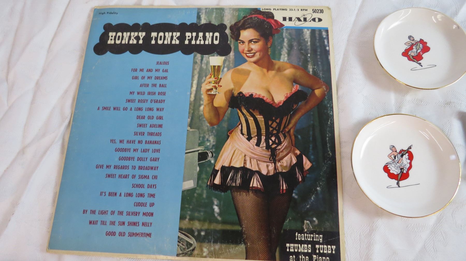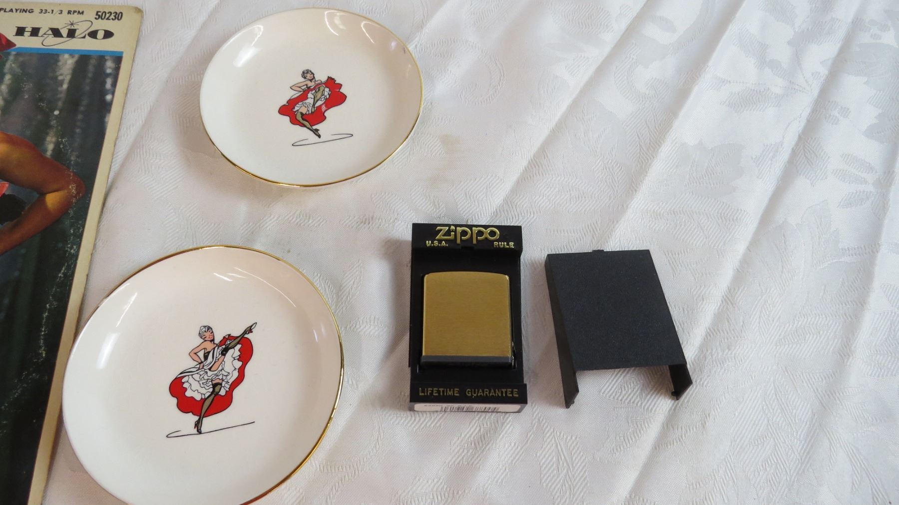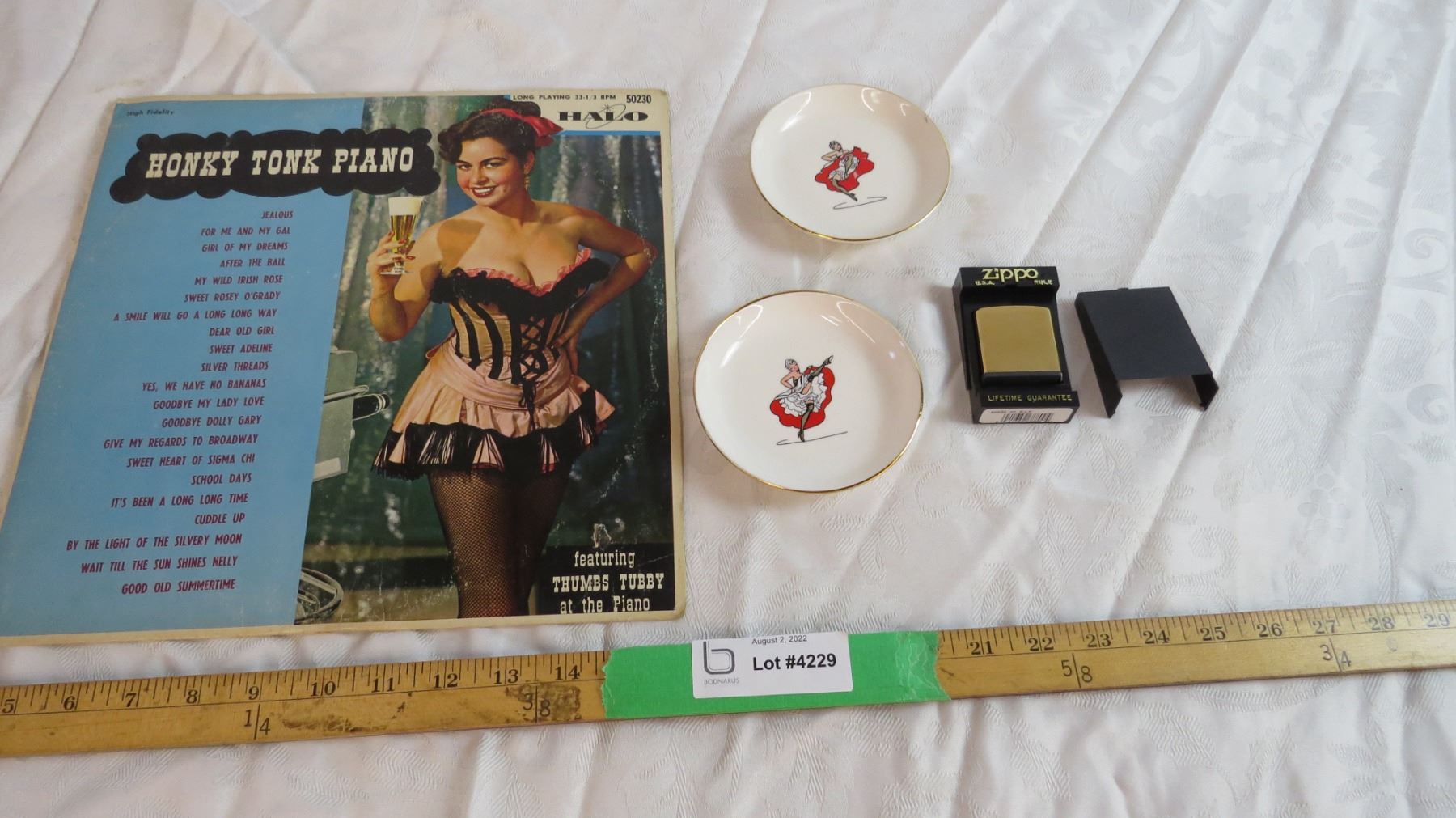 Honky Tonk Piano + 2 Dancing girl trinket dishes + Zippo Measuring tape