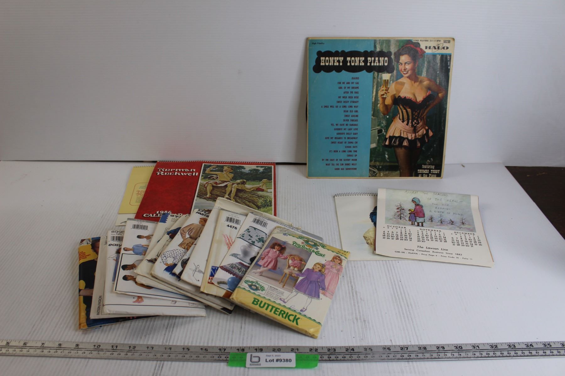 Honky Tonk Piano Vinyl Record, (2) Norman Rockwell Calendars, Assorted Clothing Crafts, Misc.