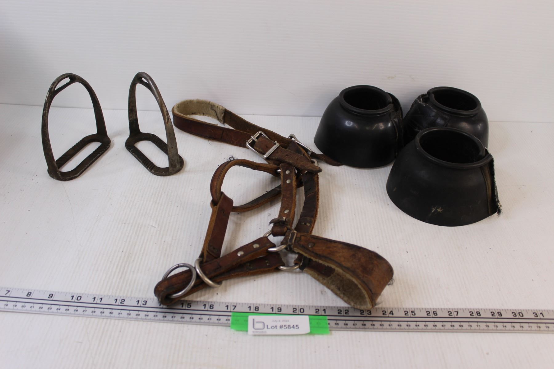 Horse Halter, Set of Stirrups, (3) Horse Boots/Cuffs