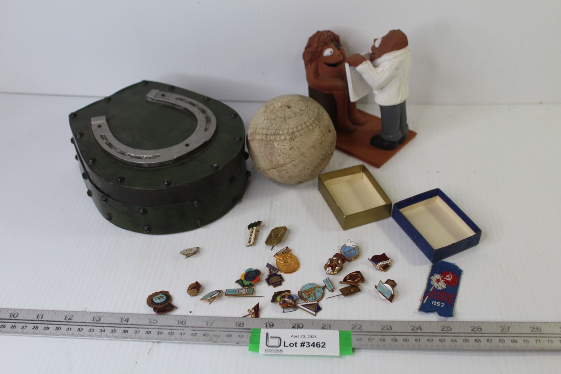 Horse Shoe Jewelry Box - Assortment of Russian Pins - Softball - Clay Ornament