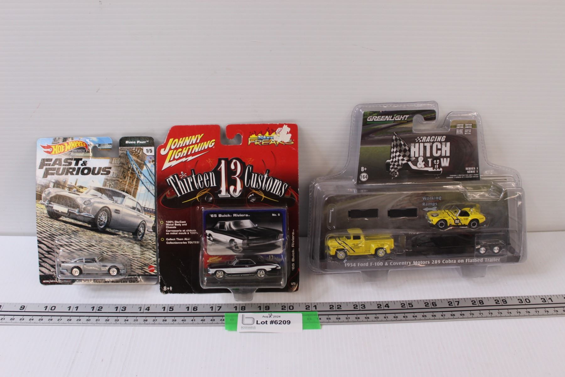 Hot Wheels Aston Martin, Johnny Lighting Buick Riviera, Greenlight Hitch & Tow Die Cast Toy Set - NIB