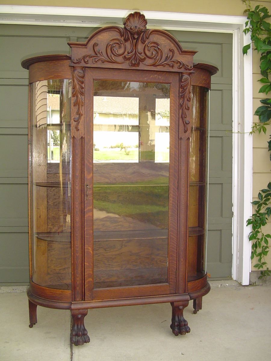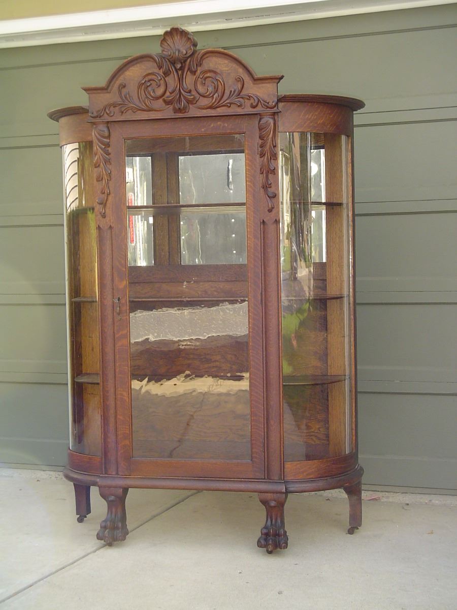 Huge 48” 1/4 Cut Oak Paw Footed Fancy Curved Glass China Cabinet