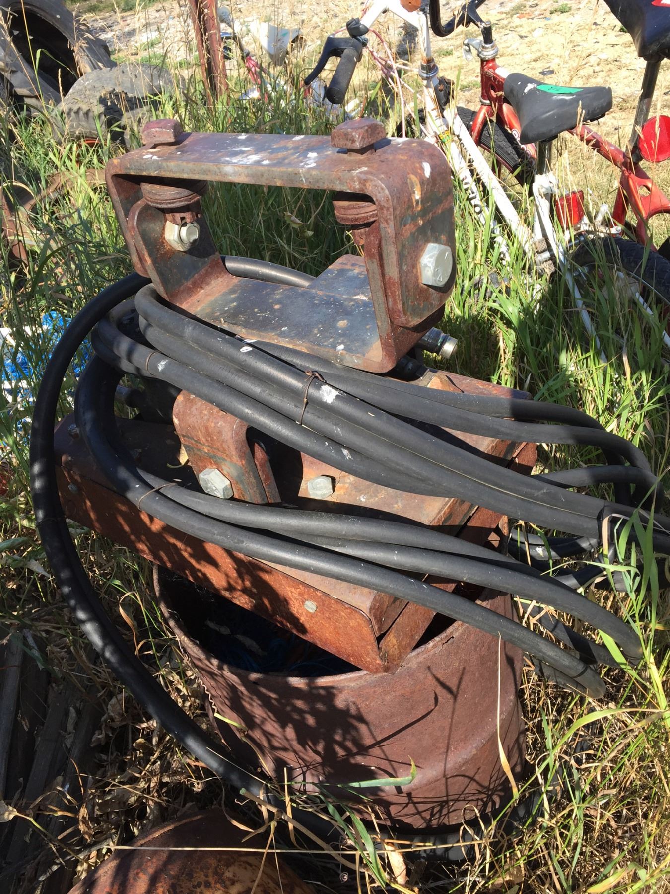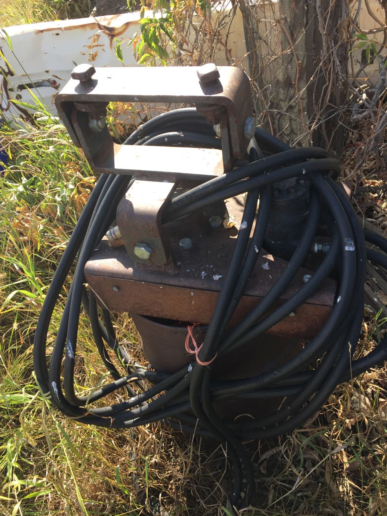 hydraulically driven post hole digger mounted on a front end loader including a 12" auger & 5 foot hydraulic hose; also includes a 3 point hitch drive for the same auger & extension & about 25' (X2) of a steel-wheeled trailer