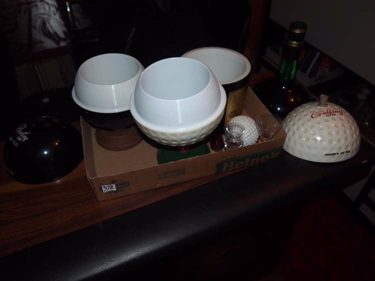 Ice Containers (3), Shaped Like A Bowling Ball, A Golf ball, And A Cognac Bottle