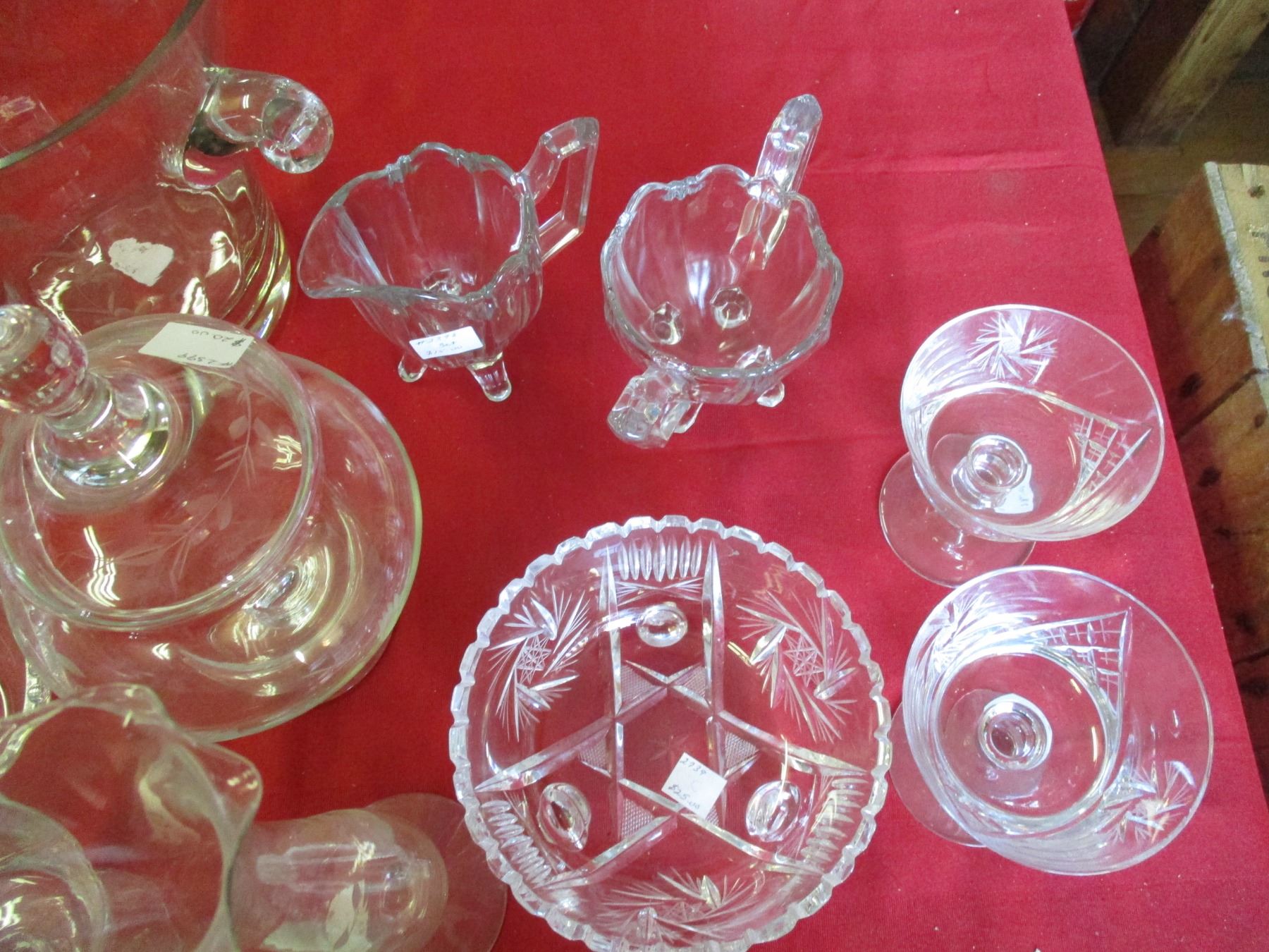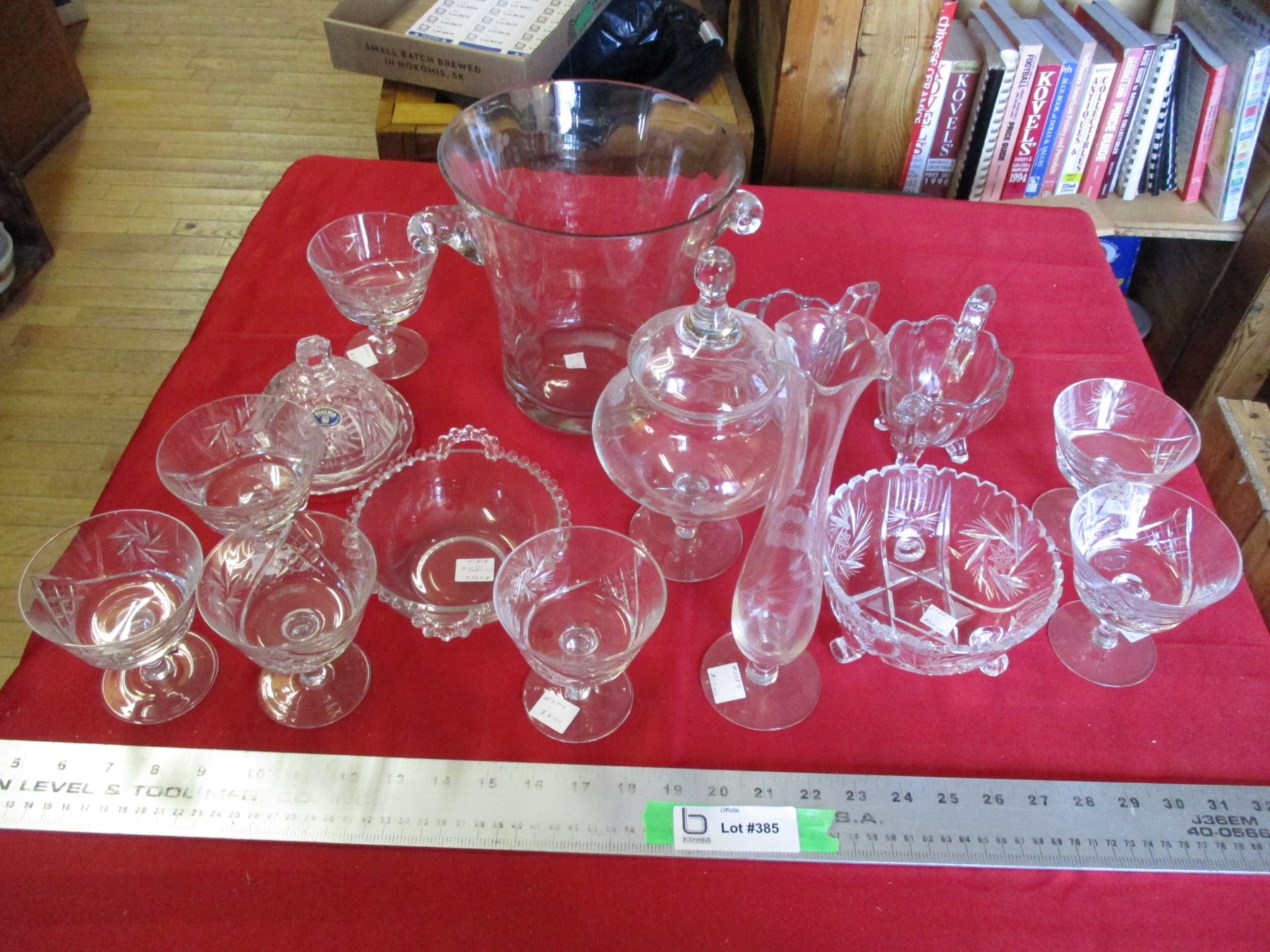 Ice bucket, footed glass, cream & Sugar, glass candy dish, small footed bowl, crystal butter dish, vase, etc