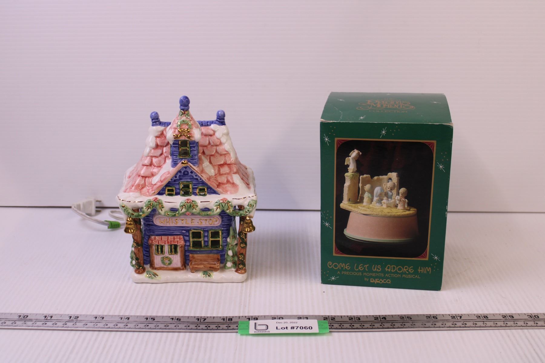 Illuminated Christmas House + Precious Moments Music Box (NIB)