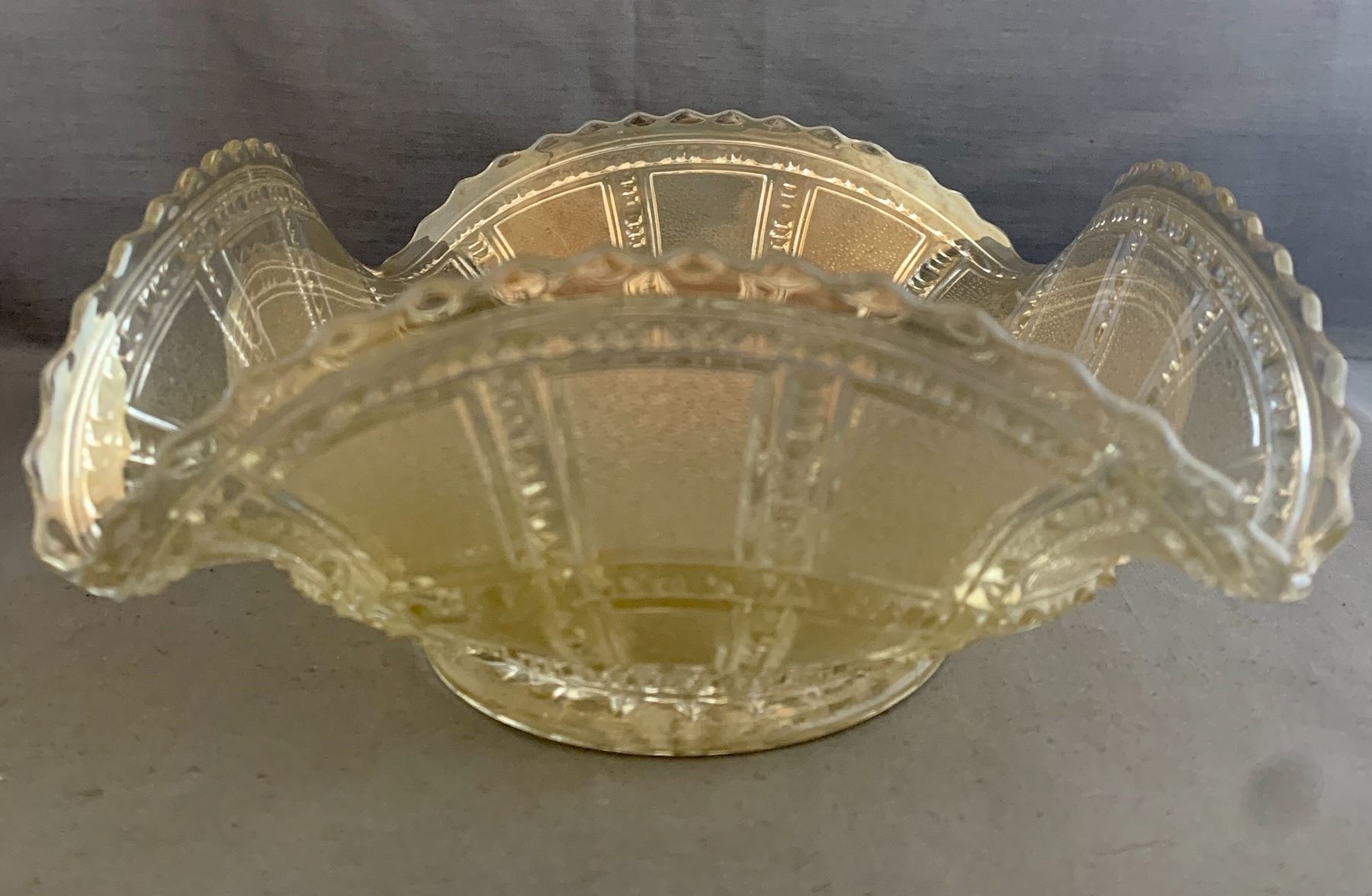 Imperial Glass Company Frosty White Carnival Glass "Frosted Block & Beads" Rare 4-Sides Up Dish (1910)