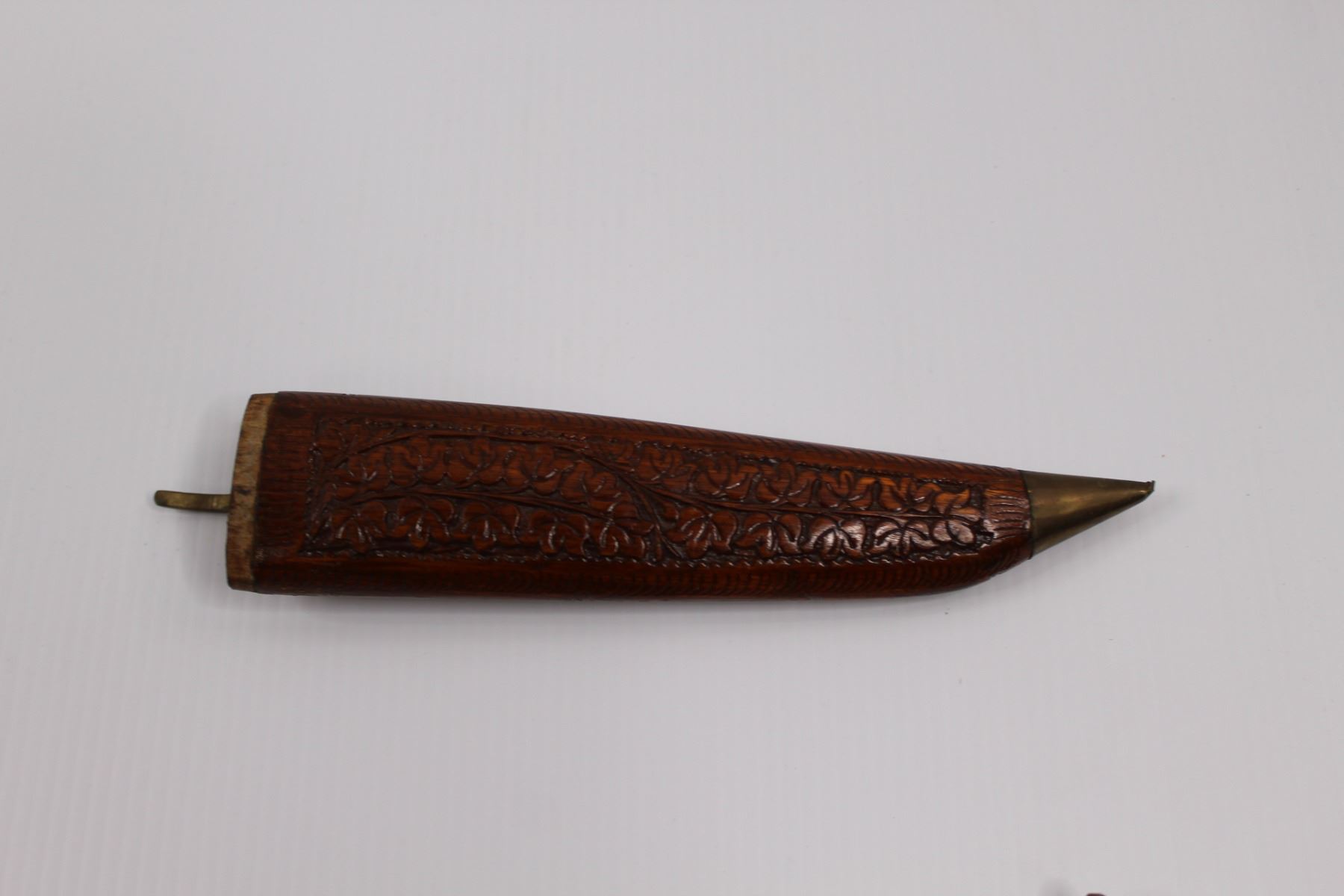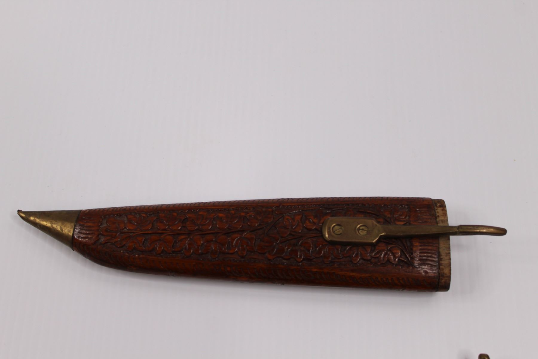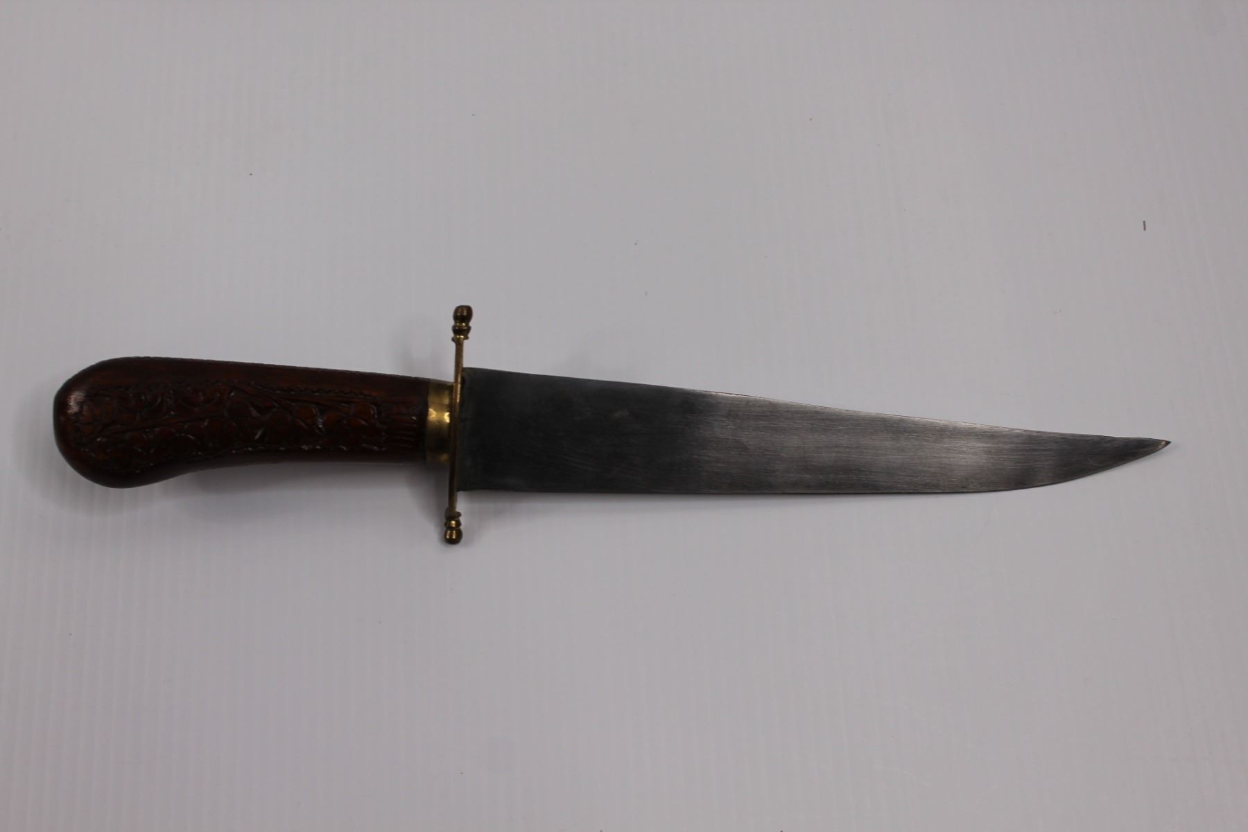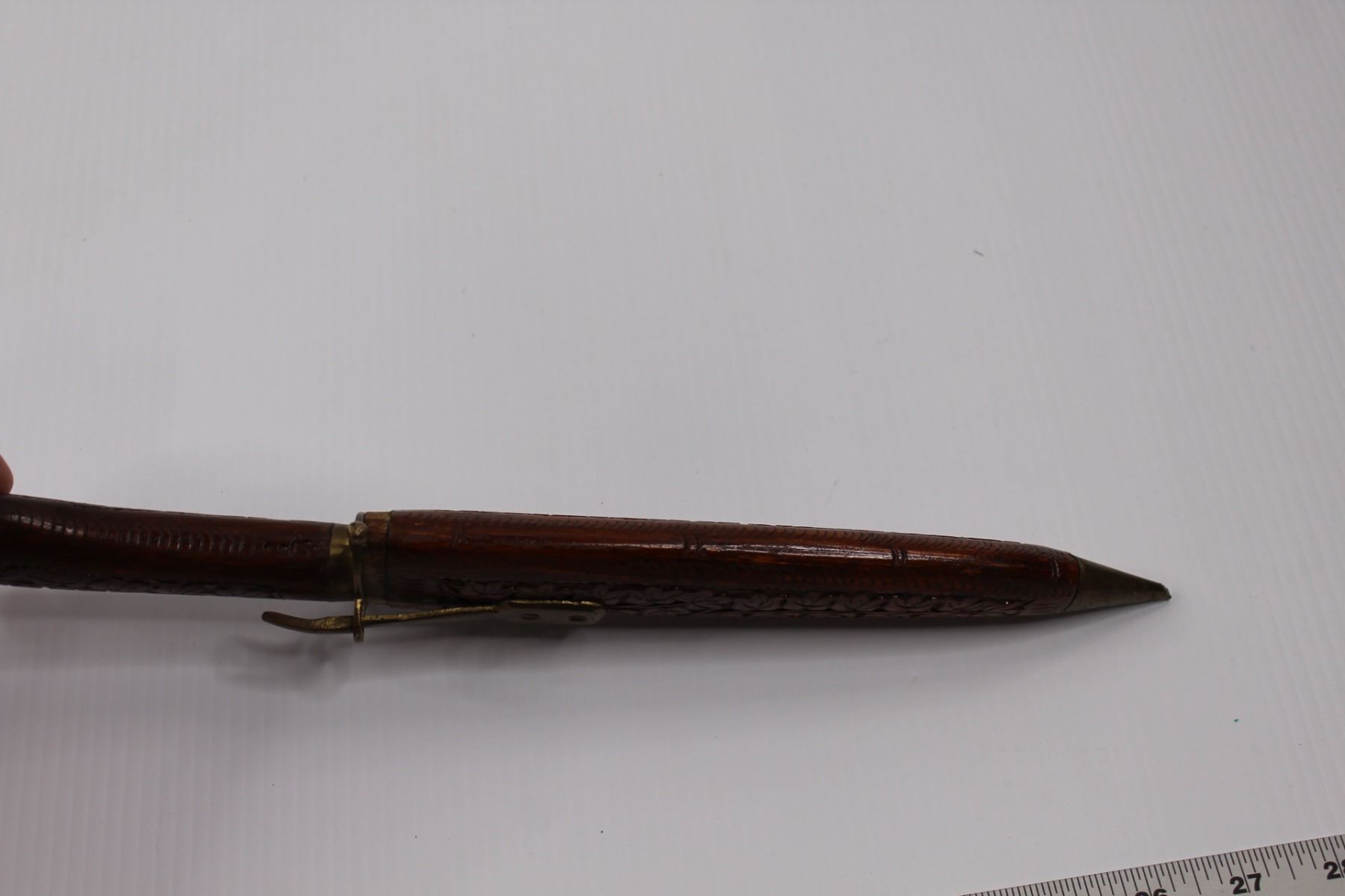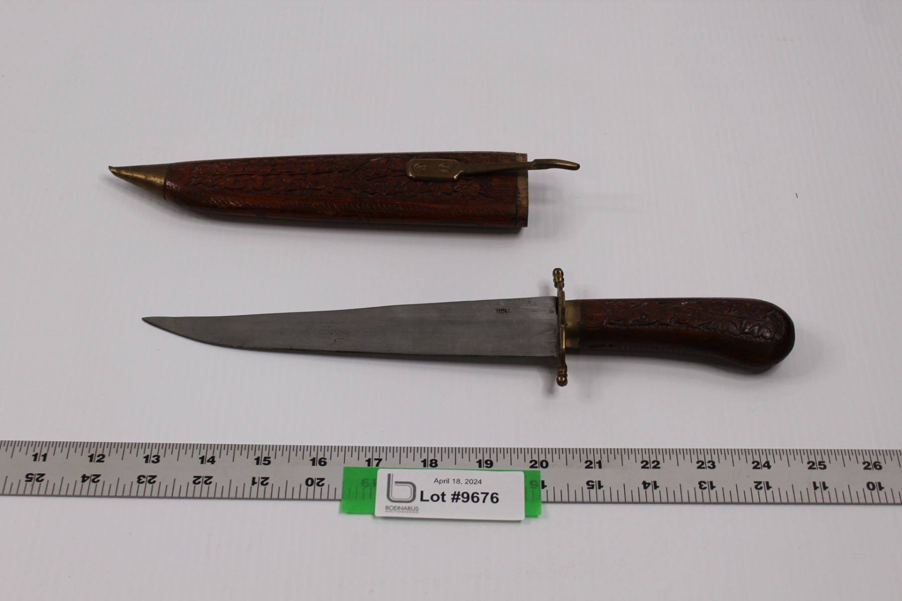 Indian Dagger w/Carved Wooden/Brass Handle & Carved Wood & Brass Sheath w/ Brass Pin Lock - Made in India