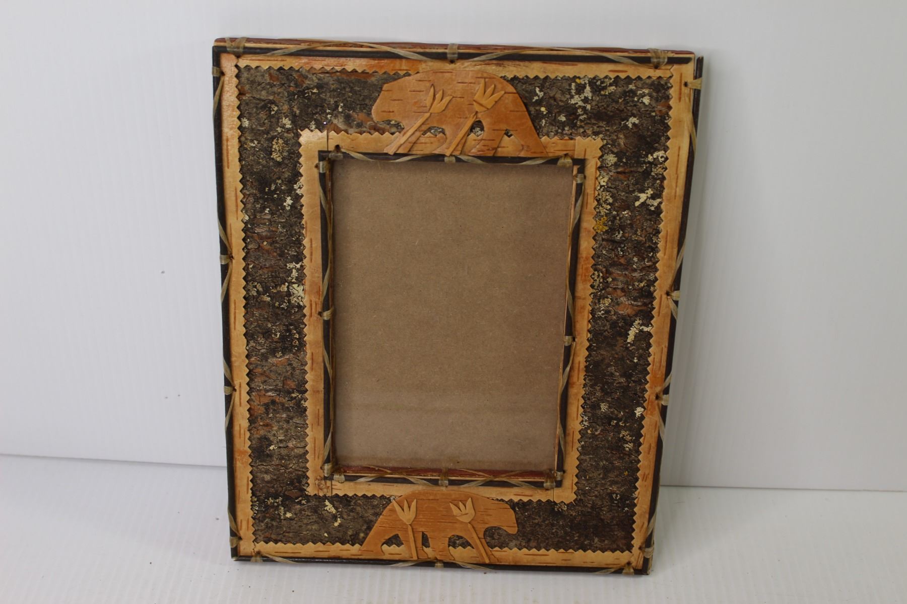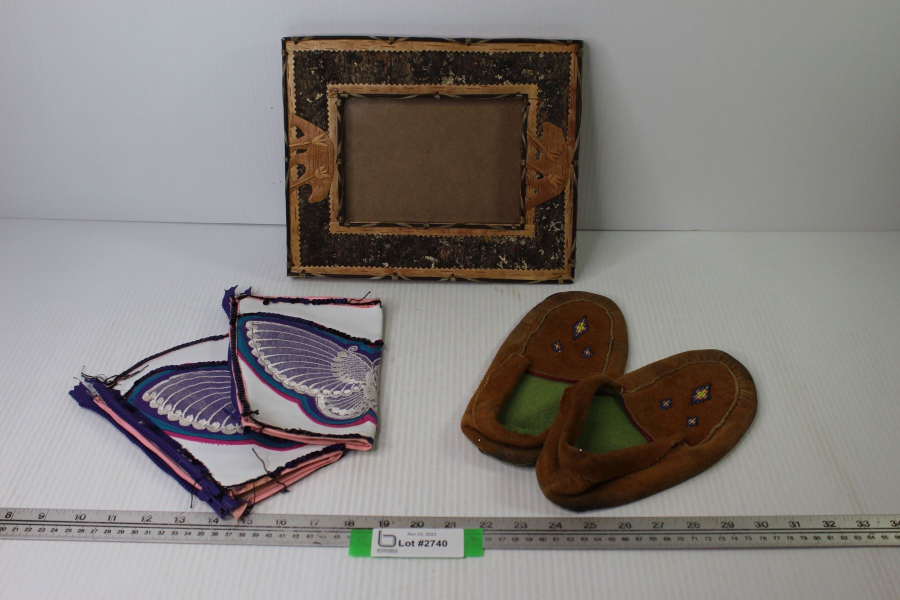 Indigenous Butterfly Cuffs - Leather Beaded Lined Moccasins - Birch Bark Photo Frame (11" x 9 1/2")
