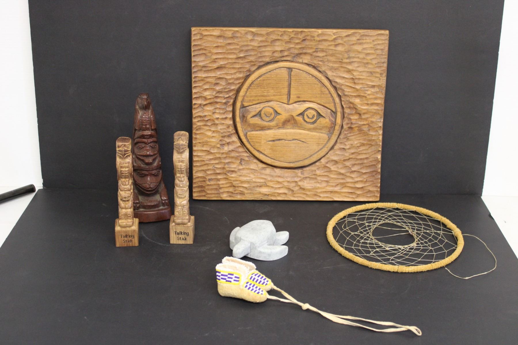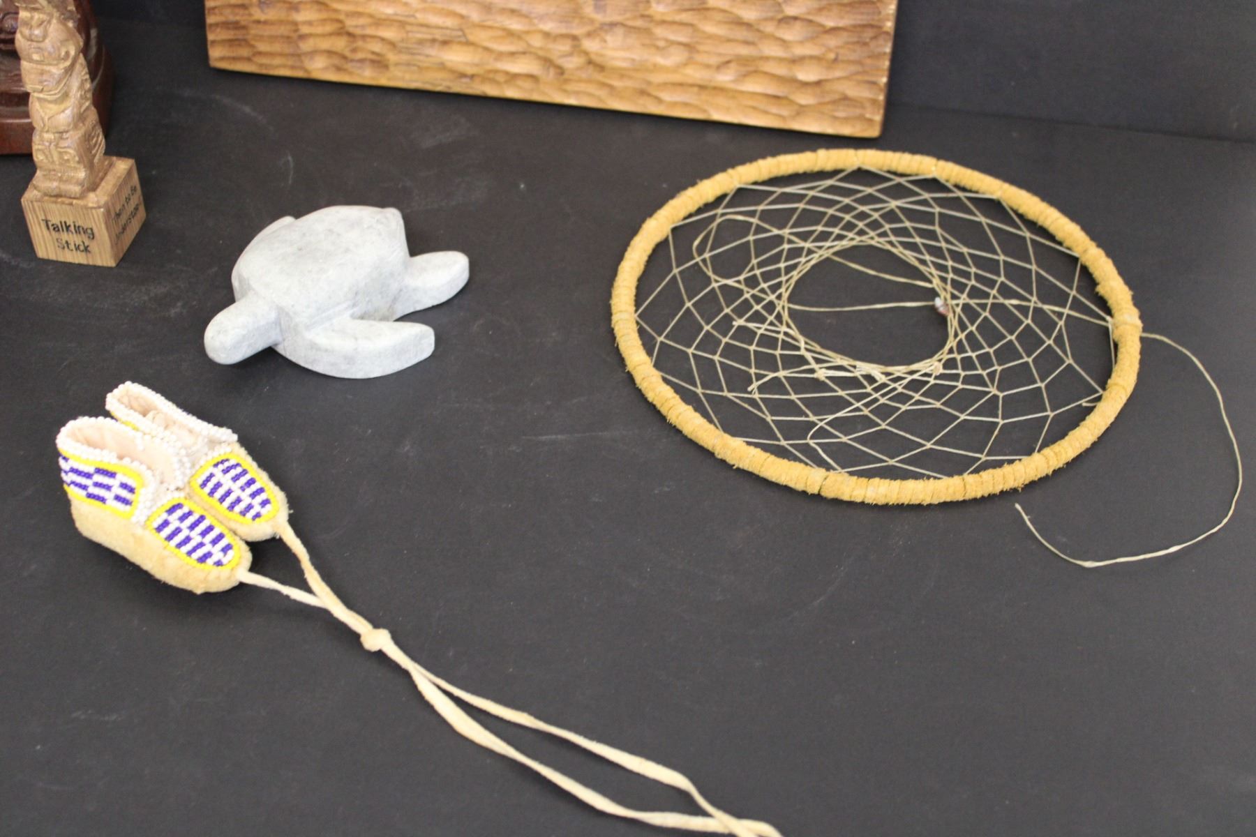 Indigenous Wood Carving, Dreamcatcher, Soapstone Turtle and Figures