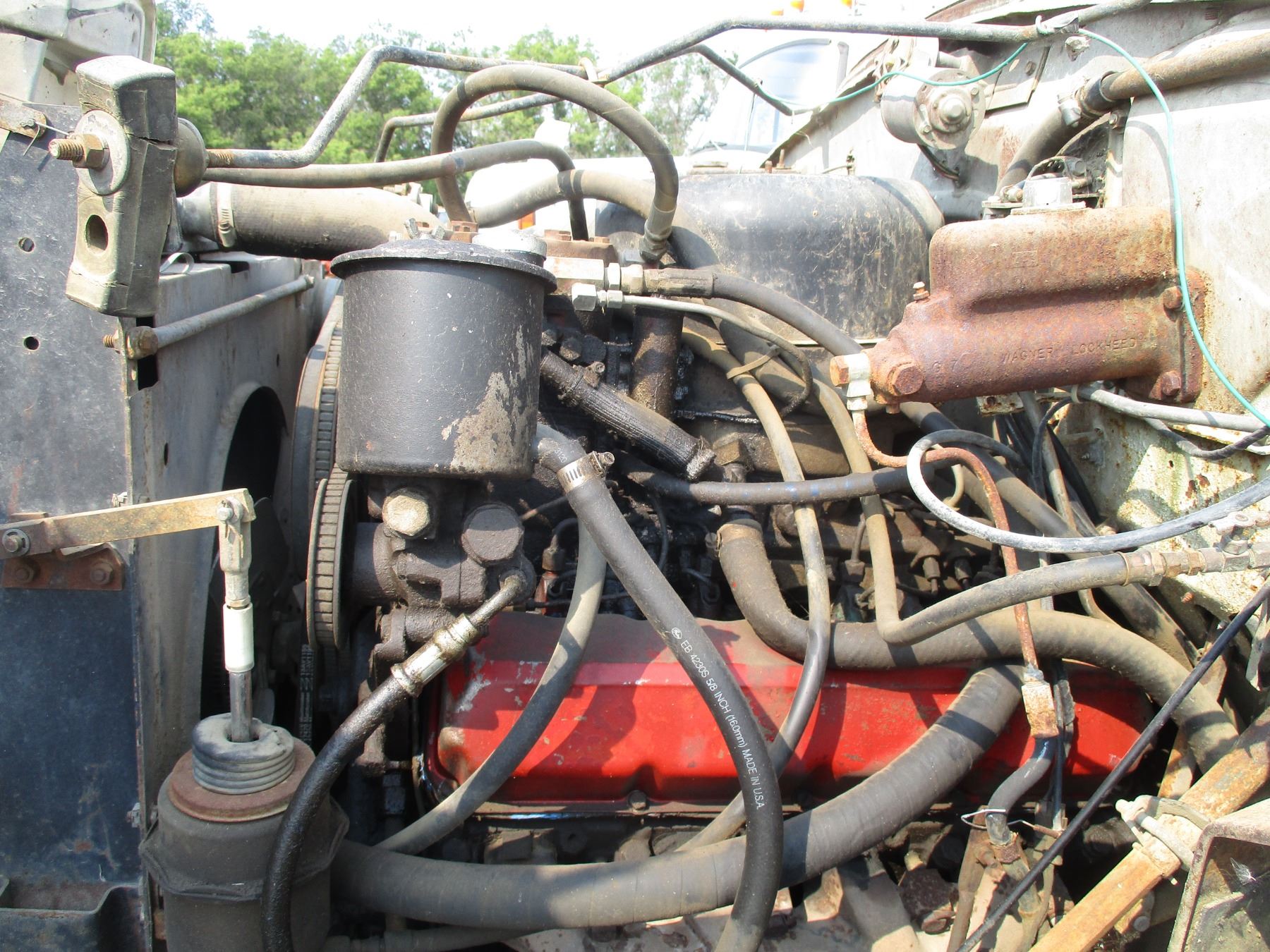 International Loadstar 1850 Truck - Diesel, Tandem, Dual Ram Hoist, Air Breaks (poor), Metal Box (18' x 8'), Tarp - 160,256Miles - - Serial 15685ECA11949