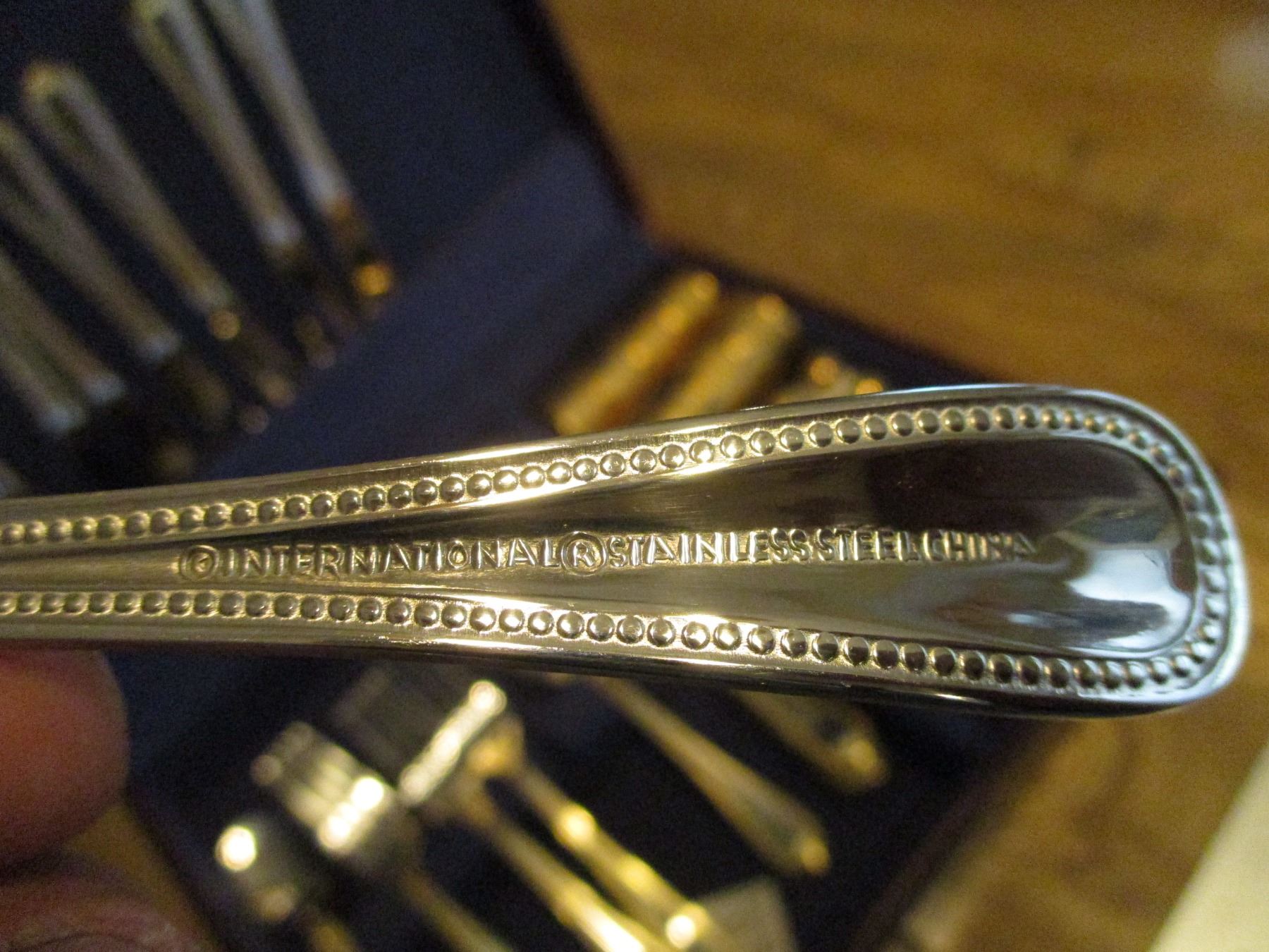 International Stainless Steel Flatware Set w/Wooden Box , S & P Shakers, Napkin Rings, Candle Holder