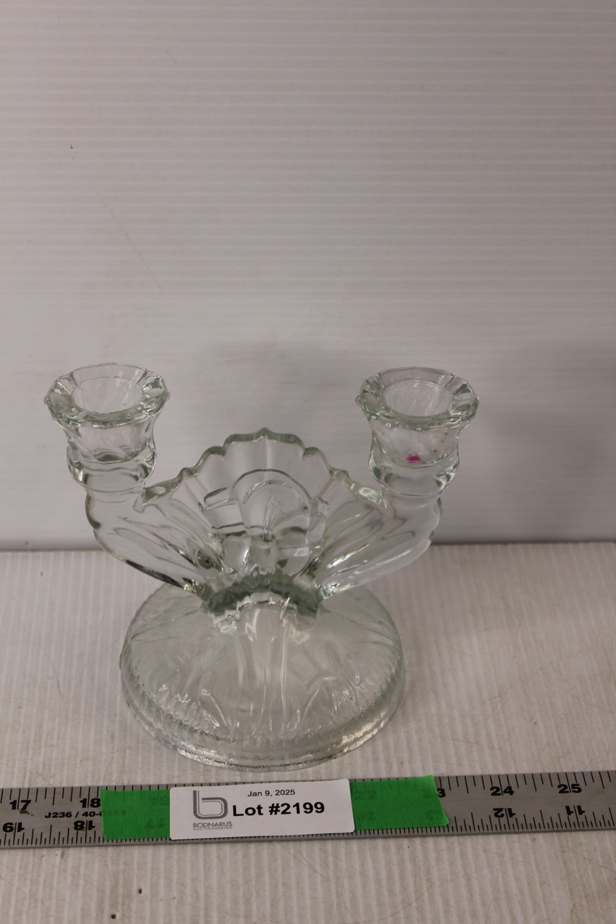 Iris and Herringbone Glass Candlestick Holder