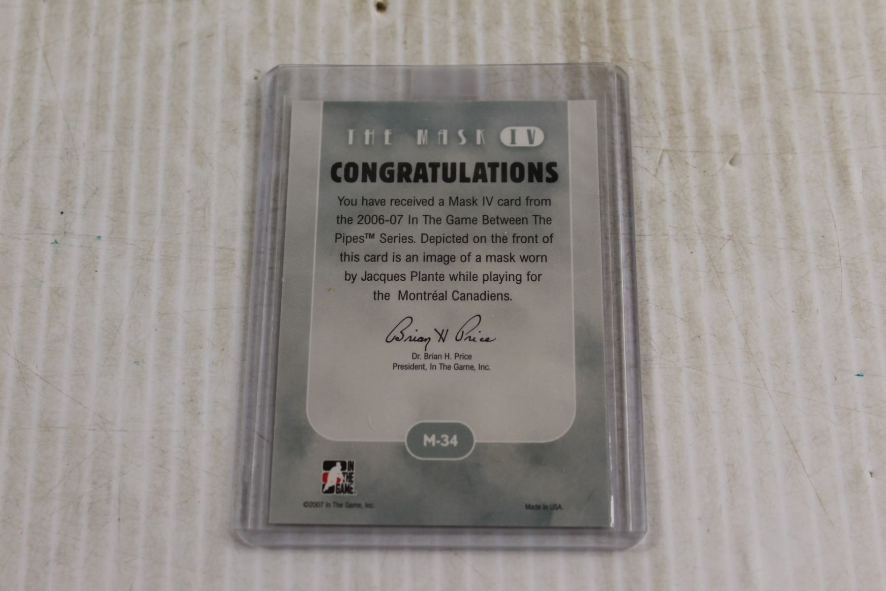 Jacques Plante 2006-07 "The Mask" Commemorative Hockey Card