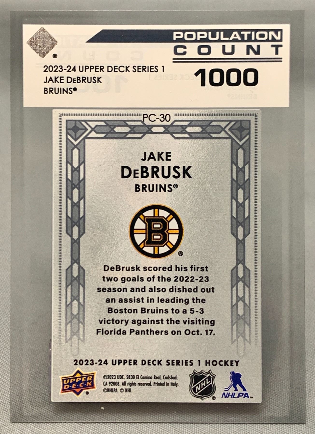 Jake DeBrusk Upper Deck Population Count 1000 Clear Cut Hockey Card