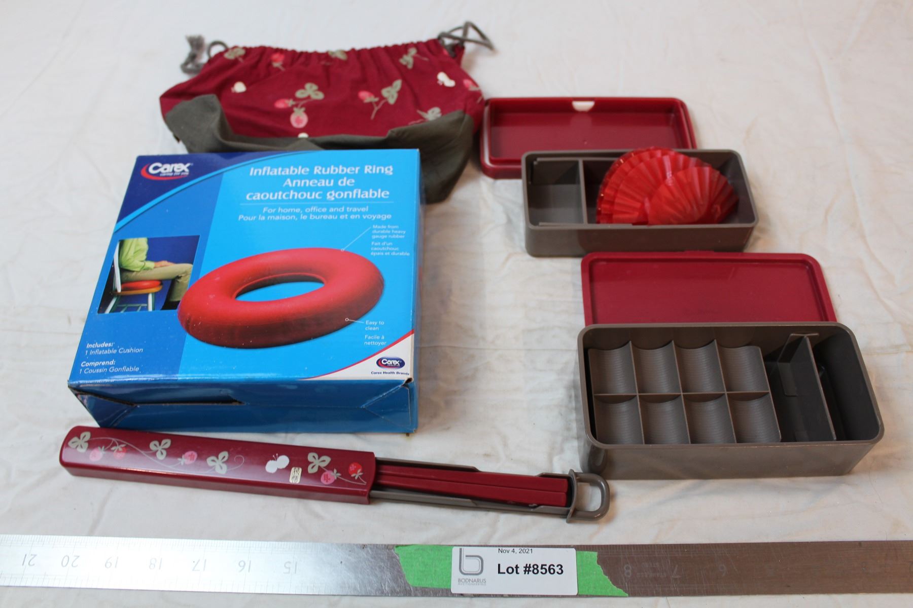 Japanese plastic bento box, Inflatable rubber ring (new in box)