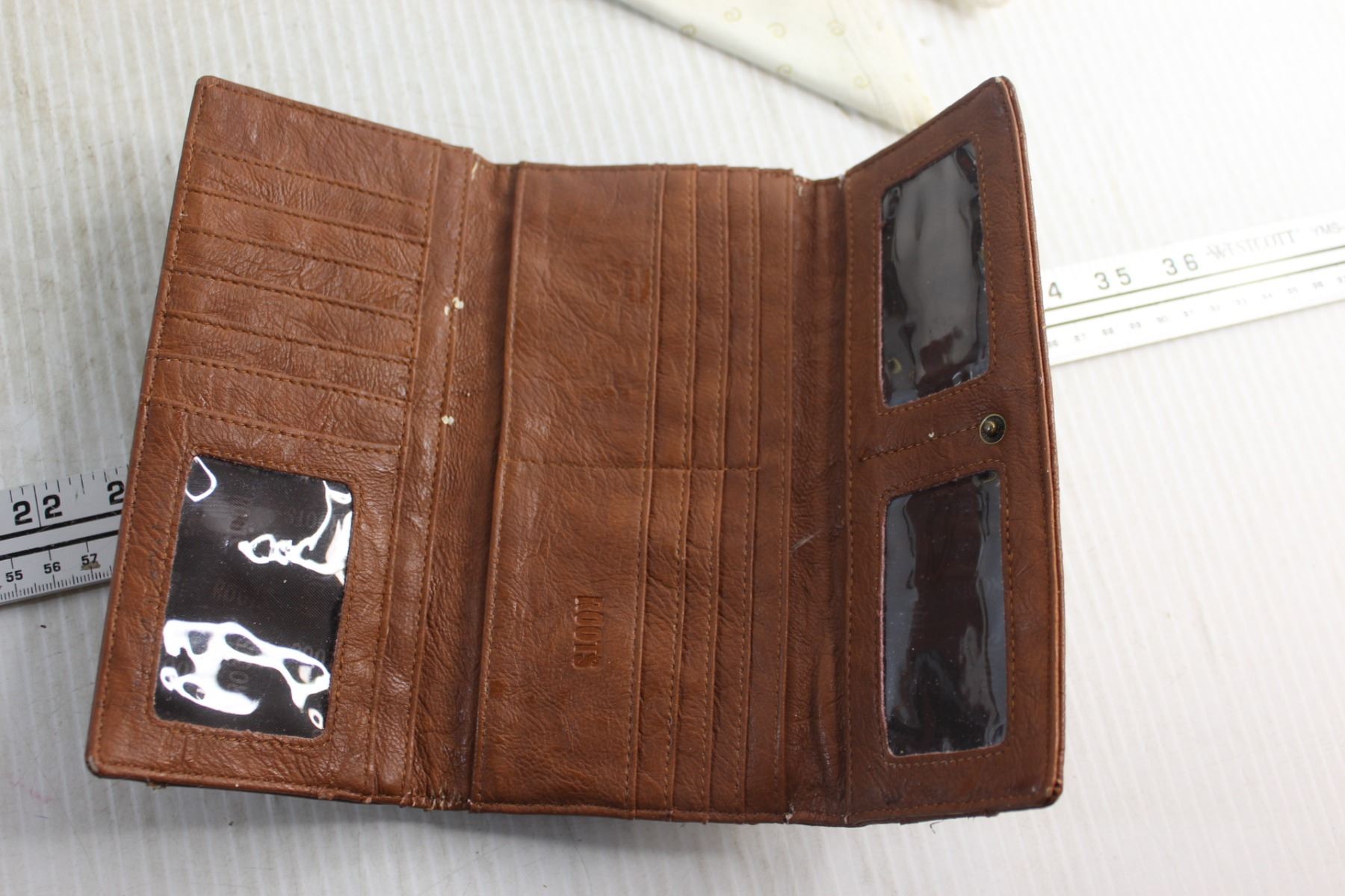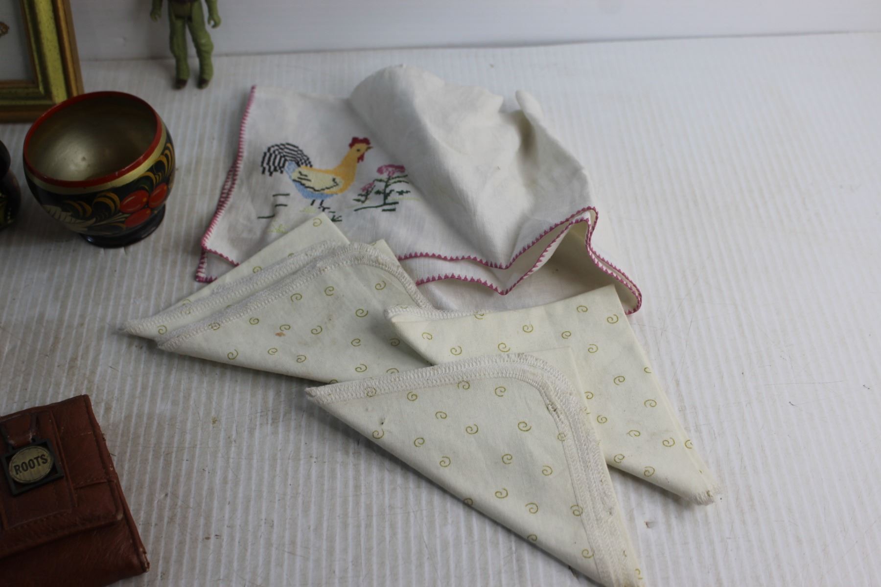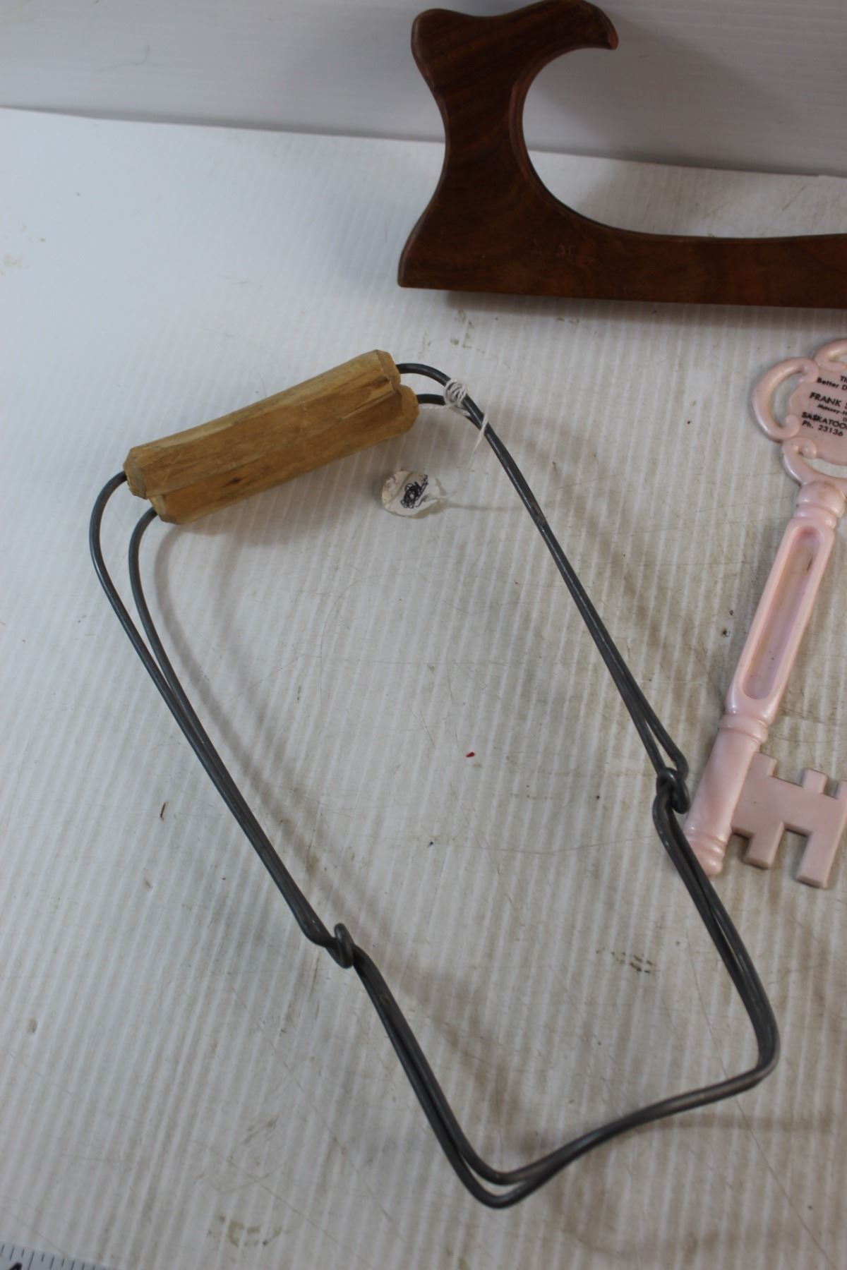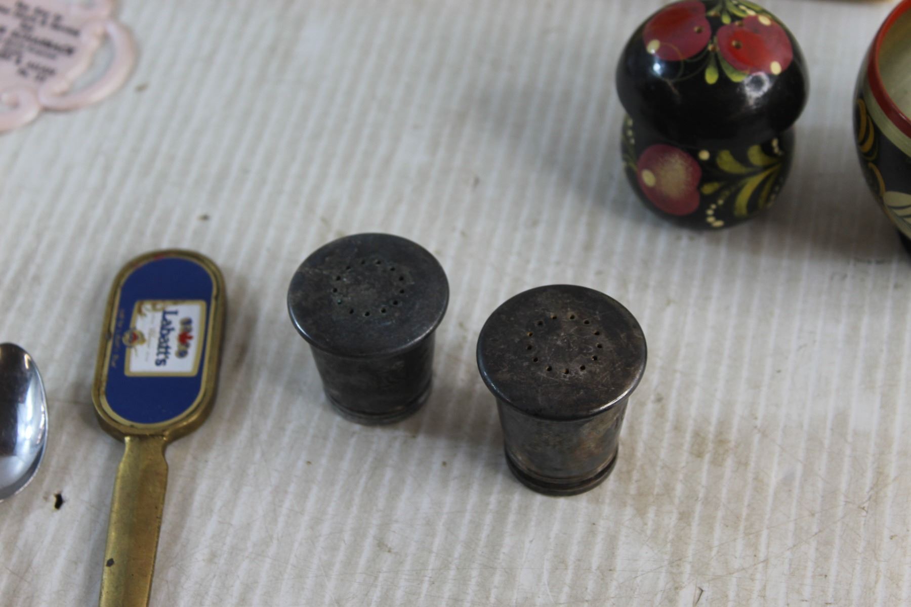 Jar Canner, Framed Needle Point Art, Labatt's Envelope Brass Opener, Salt & Pepper Shakers, Faux Leather Wallet and Assorted Items