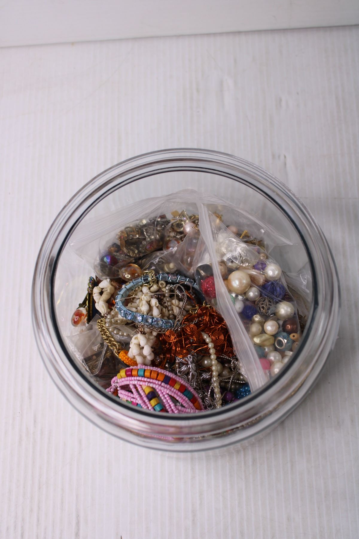 Jar of Craft Jewelry and Jewelry Making Supplies
