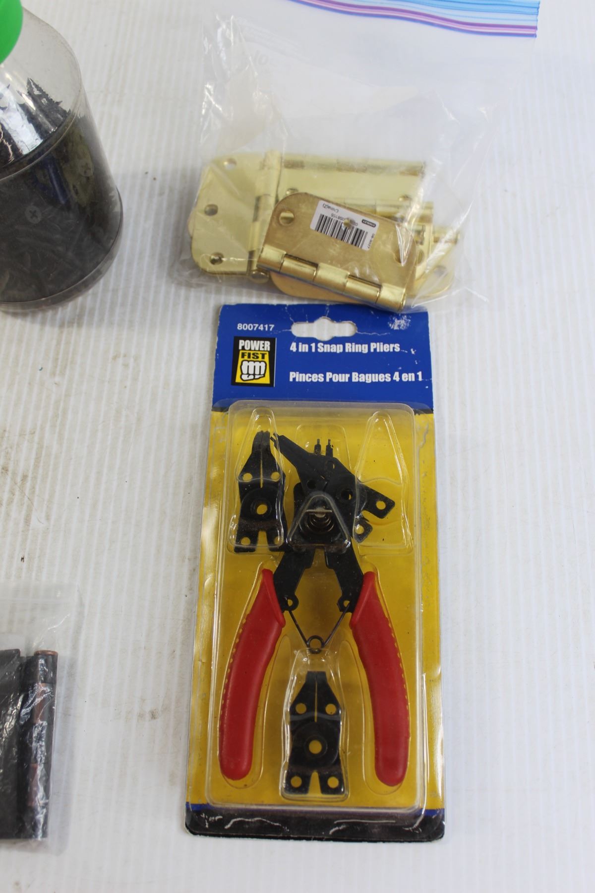 Jar of Screws, Ring Pliers, Misc.