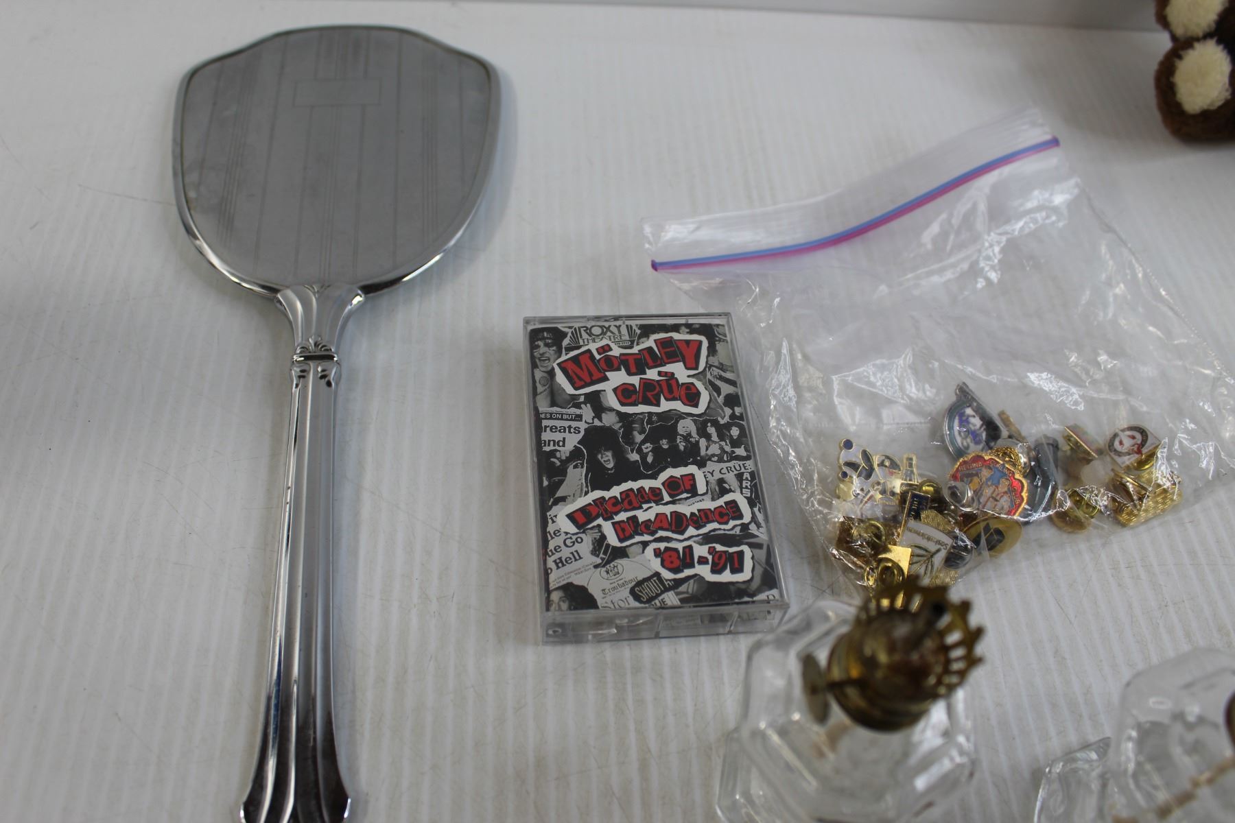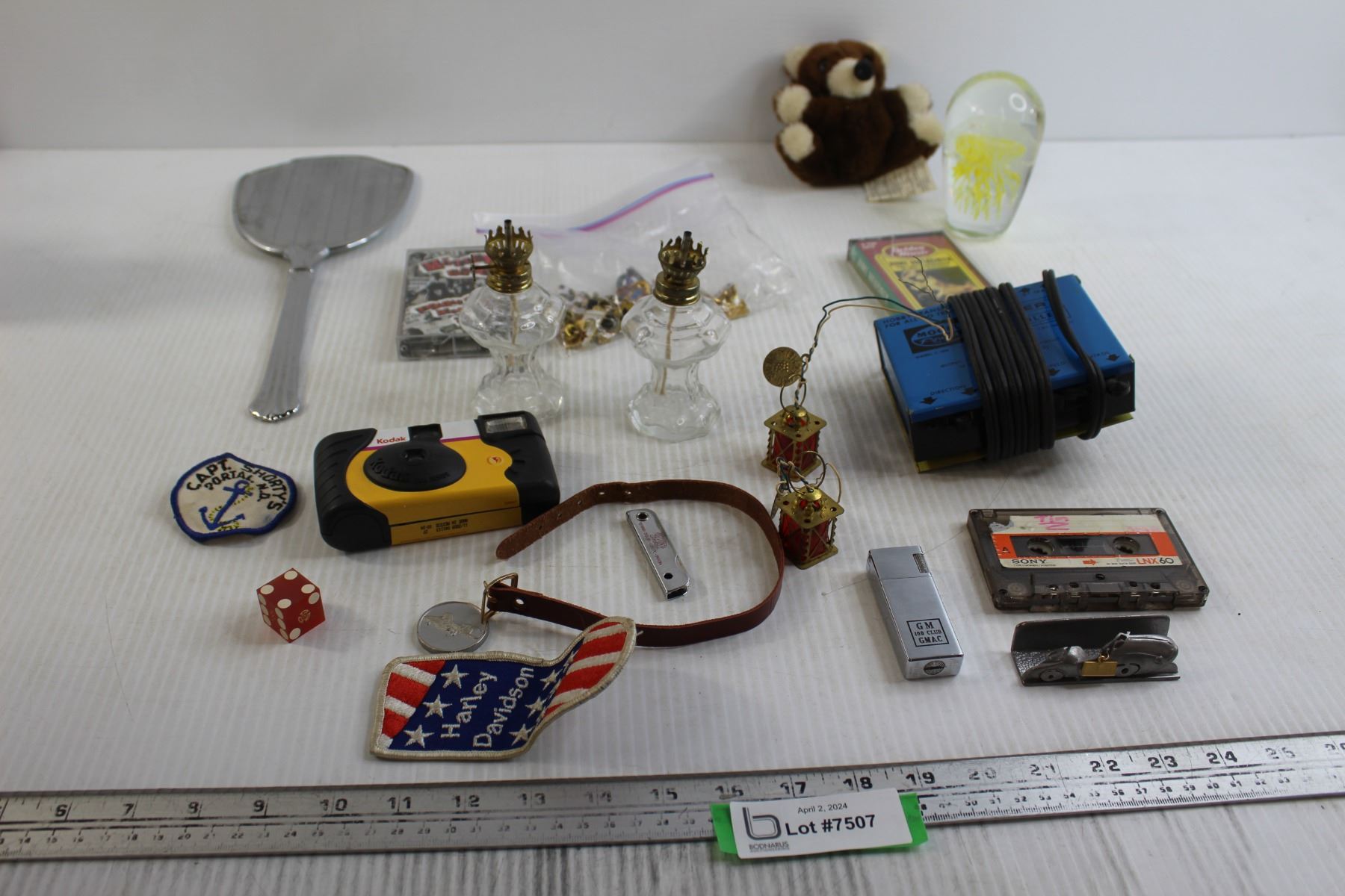 Jimi Hendrix Cassette Tape, Motley Crue Cassette Case (No Tape), Harley-Davidson Patch, Misc.