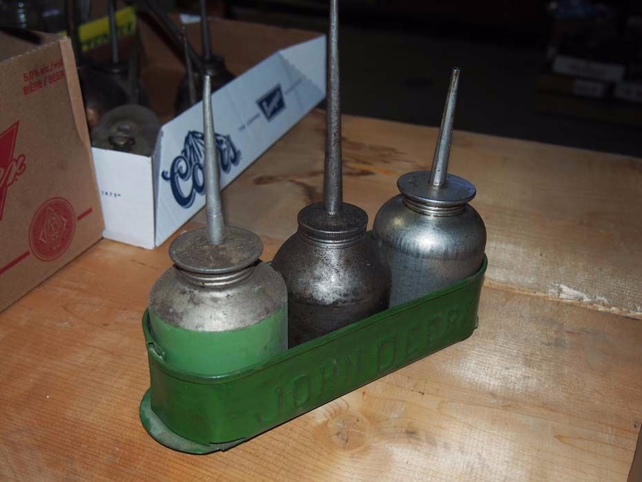 John Deere Oil Can Holder & 3 Cans