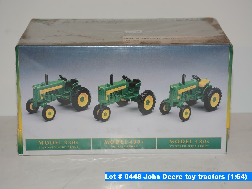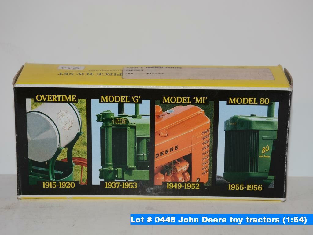 John Deere toy tractors, models 50, 520, 530, 330S, 430T, 430S, G, MI, 80, overtime (1:64)