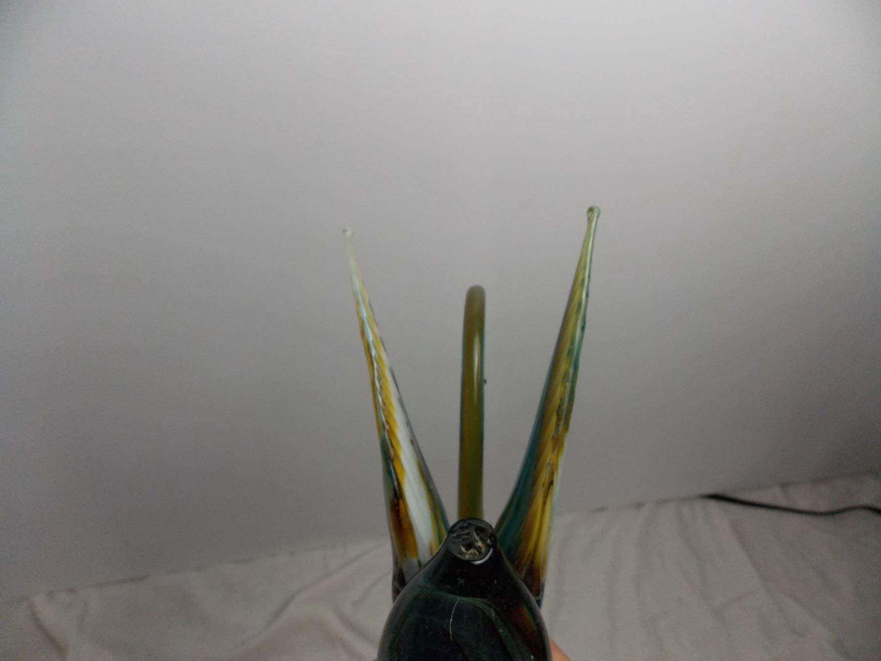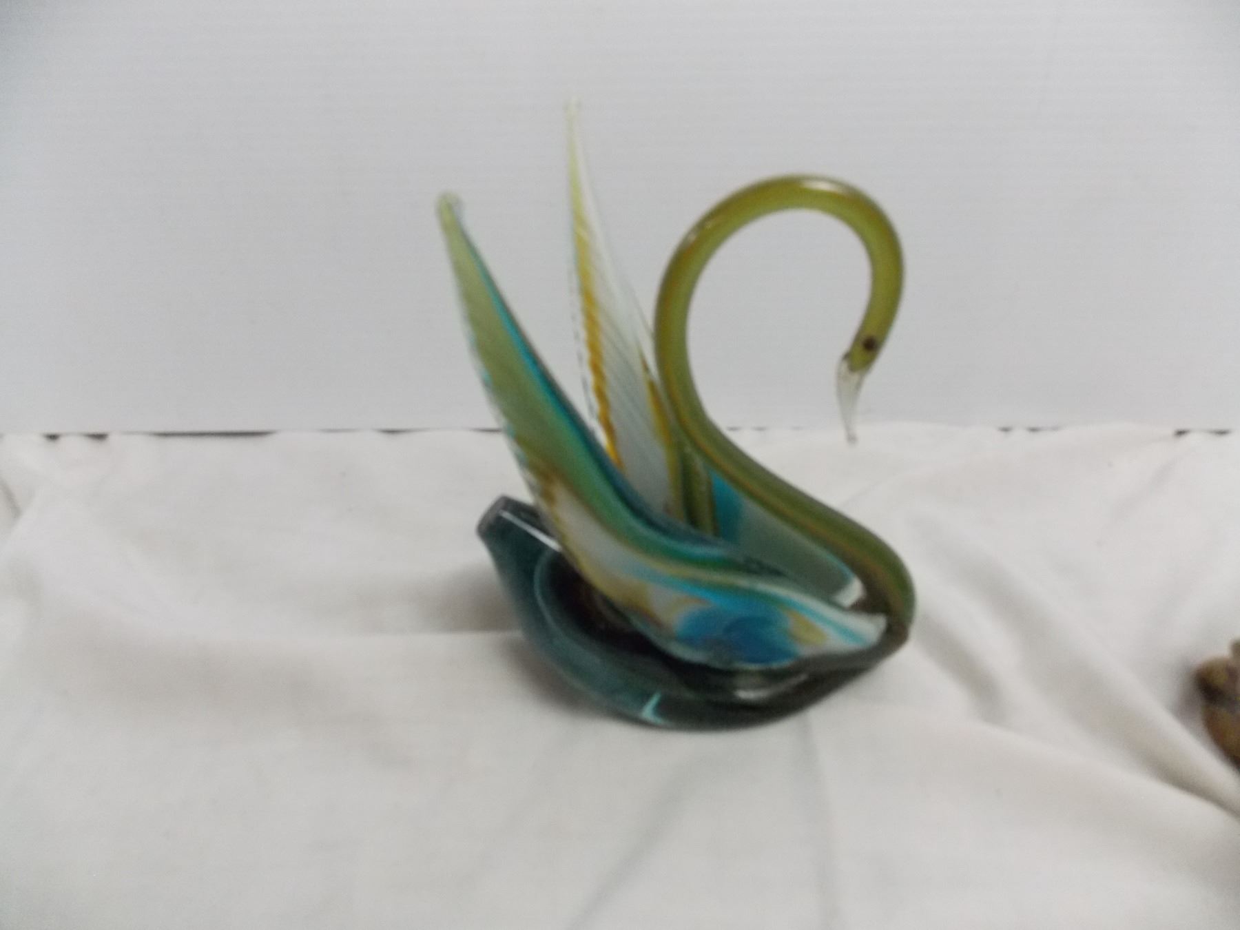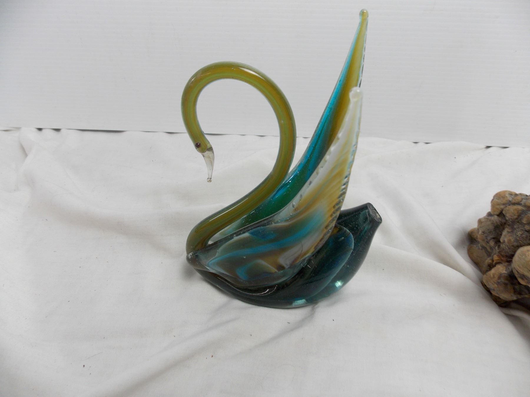 John Perry Dolphin carved statue, swan blown glass piece
