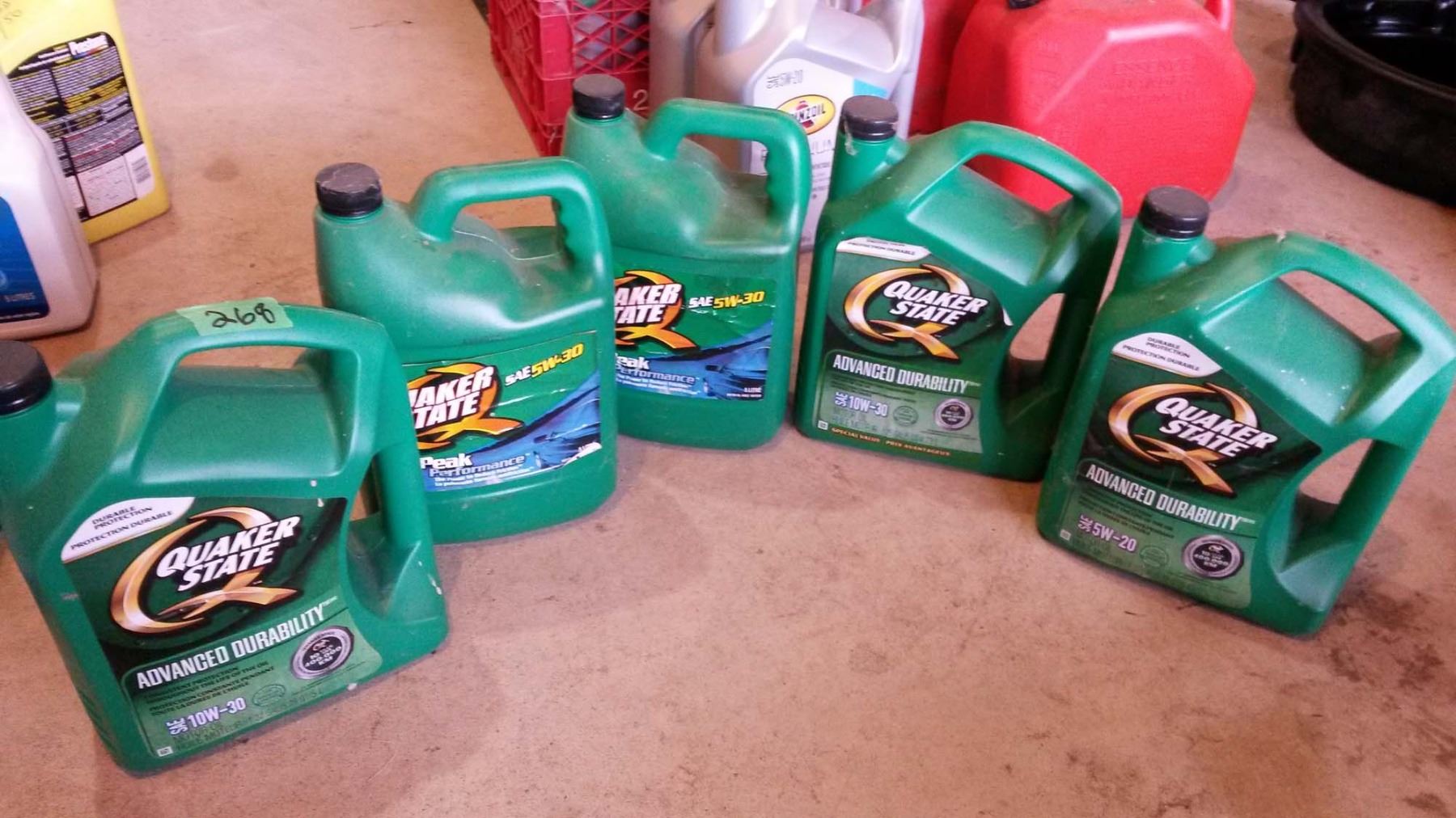 Jugs Of Quaker State Oil (10W30, SW-30, SW-20) (5) (All Full)