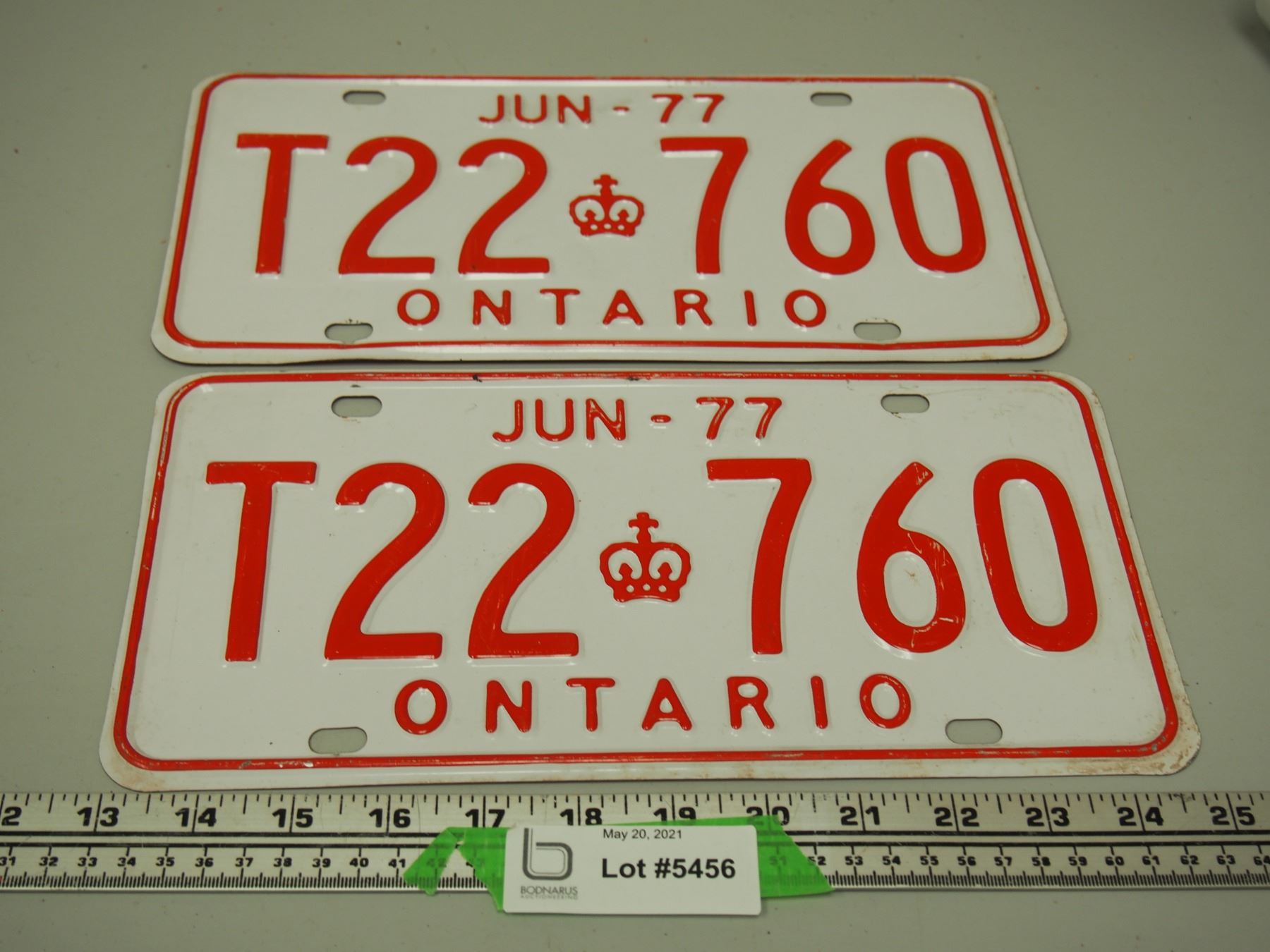 Jun 1977 Pair of Ontario Licence Plates