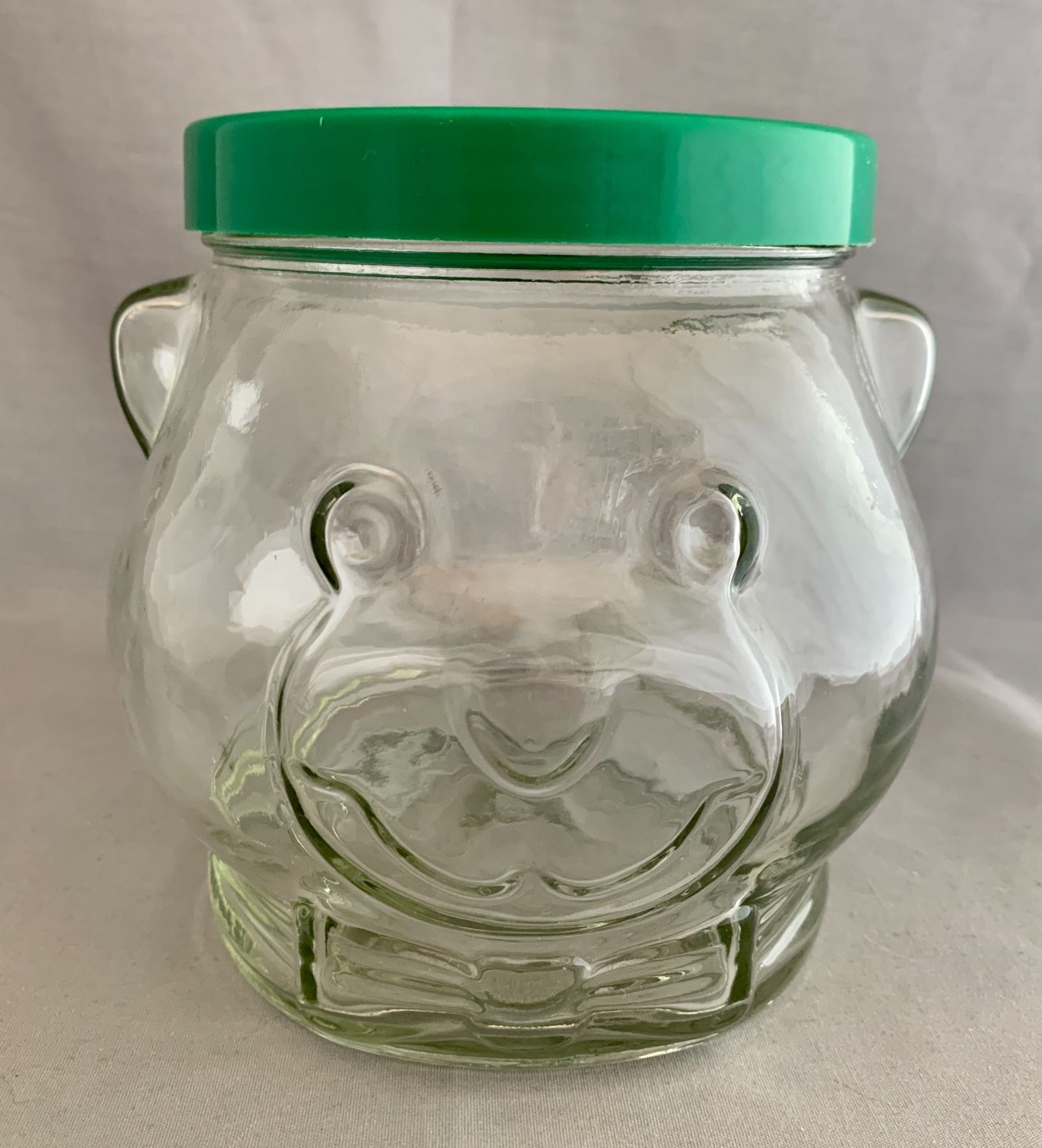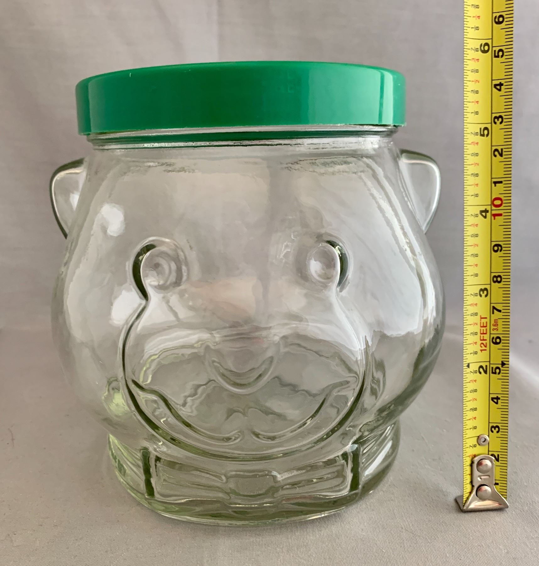 KRAFT Large Glass Bear Head Peanut Butter Jar with Original Green Lid (1988)