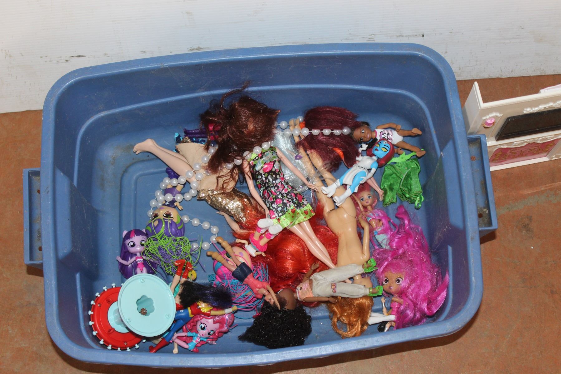 Kids' Dolls and Plastic Tote 21'' x 8'' x 16''