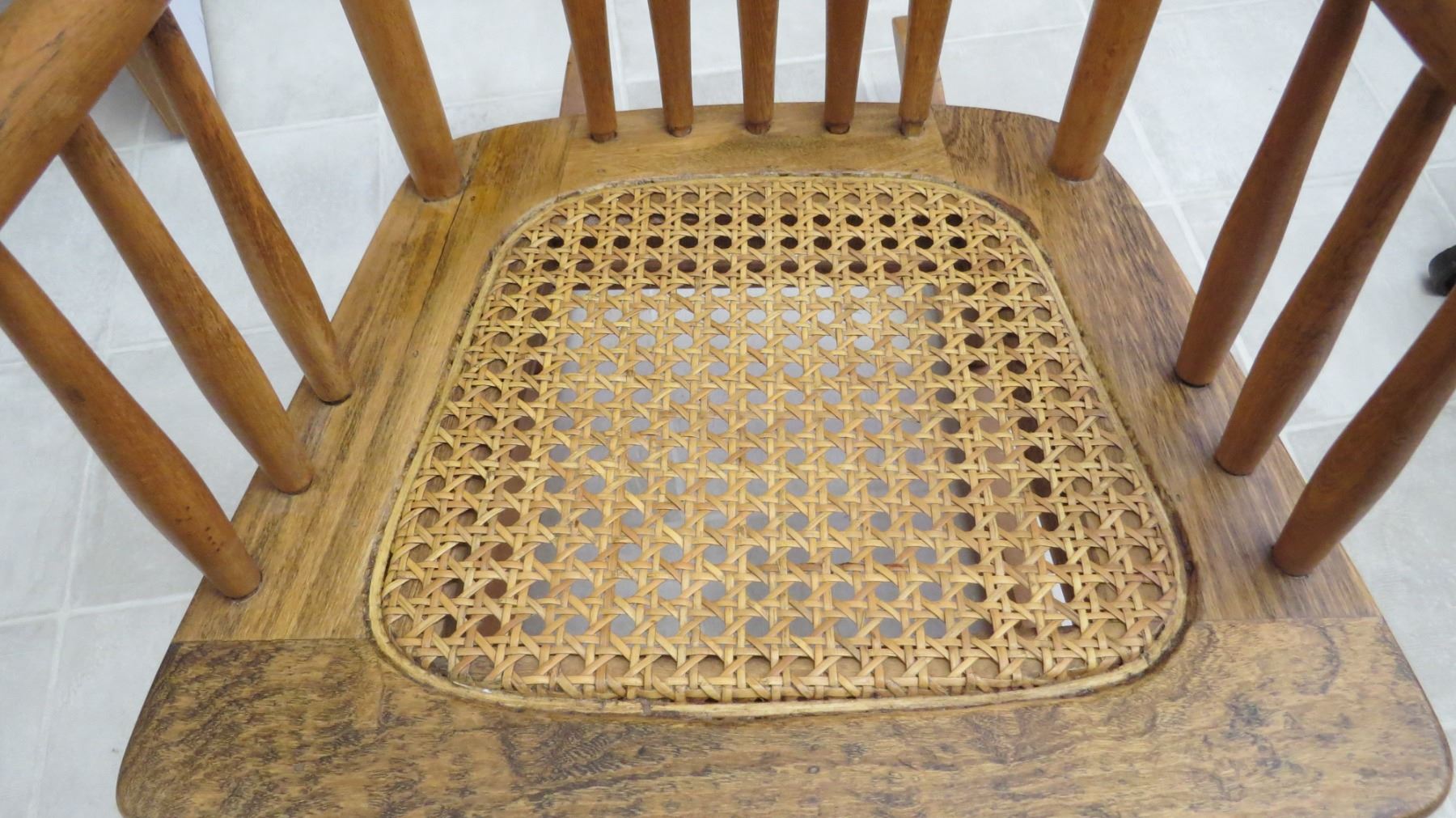 Kids wood rocking chair with wicker seat 28H