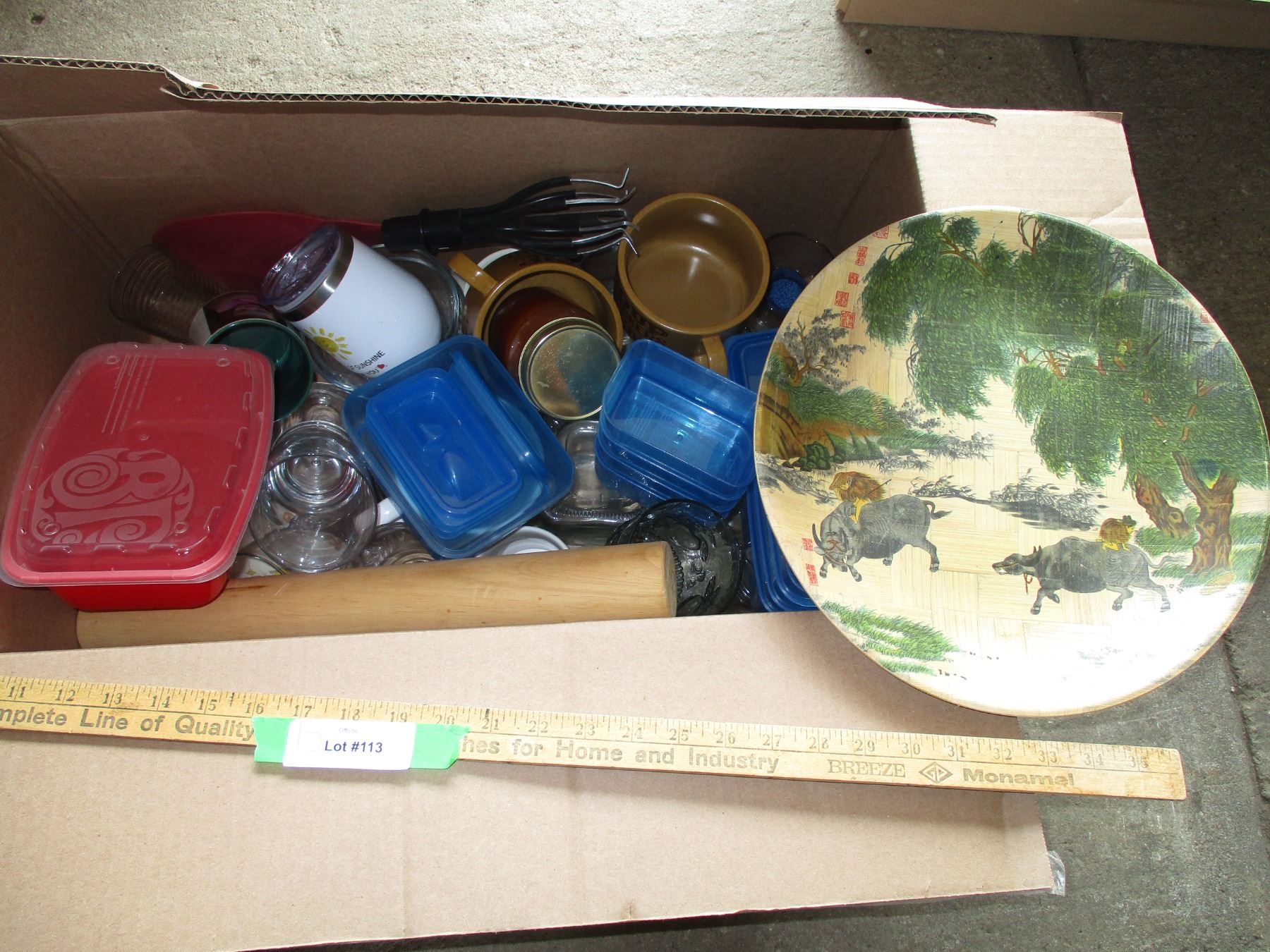 Kitchen Items - Plastic Container, Mugs, Glasses, Decorative Bamboo Plate