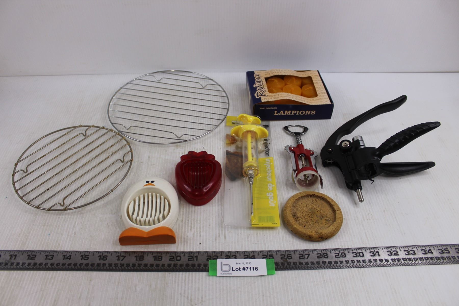 Kitchen Utensils Lot (Corkscrews, Flavor Injector - NIB, Slicers, Hot Plate Holders), Set of 10 Voti