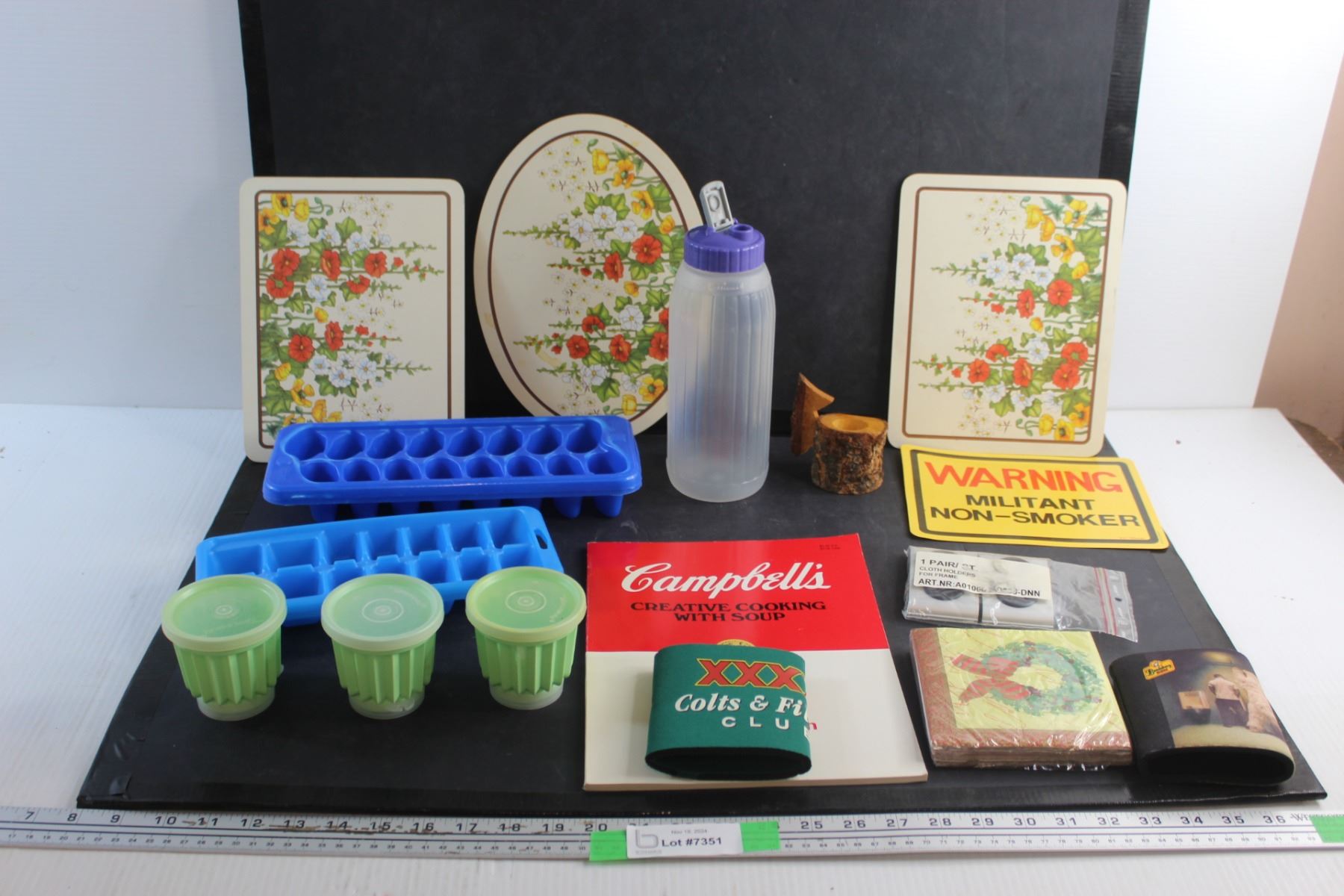 Koozies, Ice Cube Trays, Wall Decor, Tupperware Jell-O Molds, Campbells Recipe Book, Water Bottle and Misc.