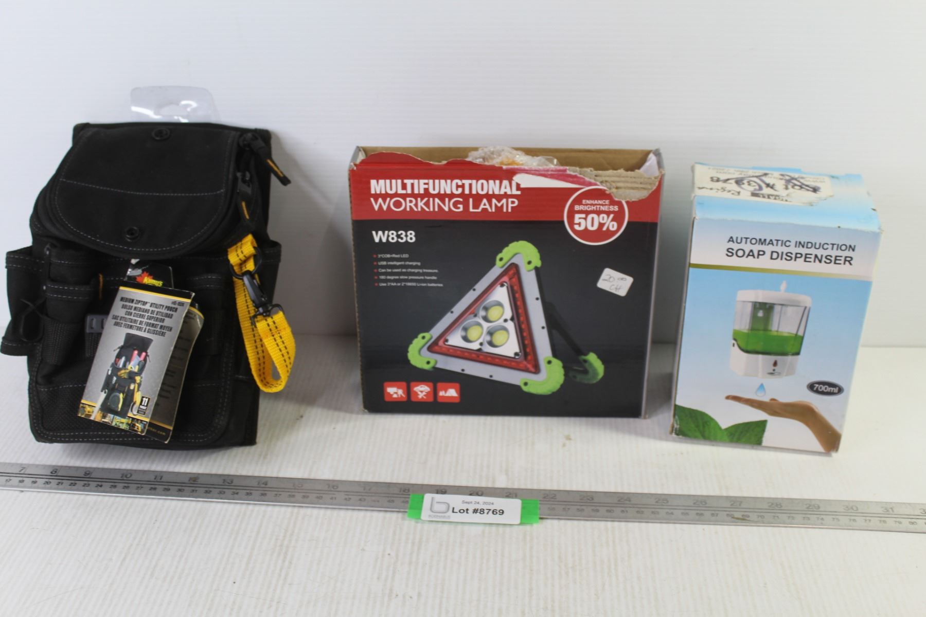 Kuny's Zip Top Work Pouch - Automatic Soap Dispenser - Multi Functional USB Work Lamp (untested)