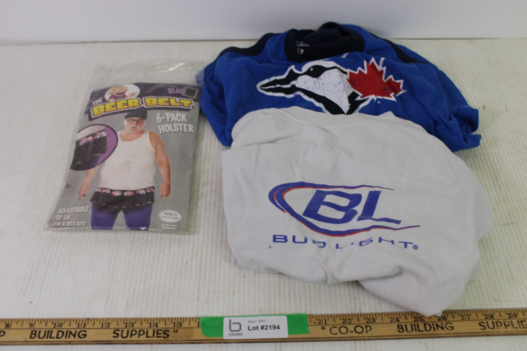 Ladies Toronto Blue Jays Tank Top, Budlight T-Shirt(XL) and new beer belt