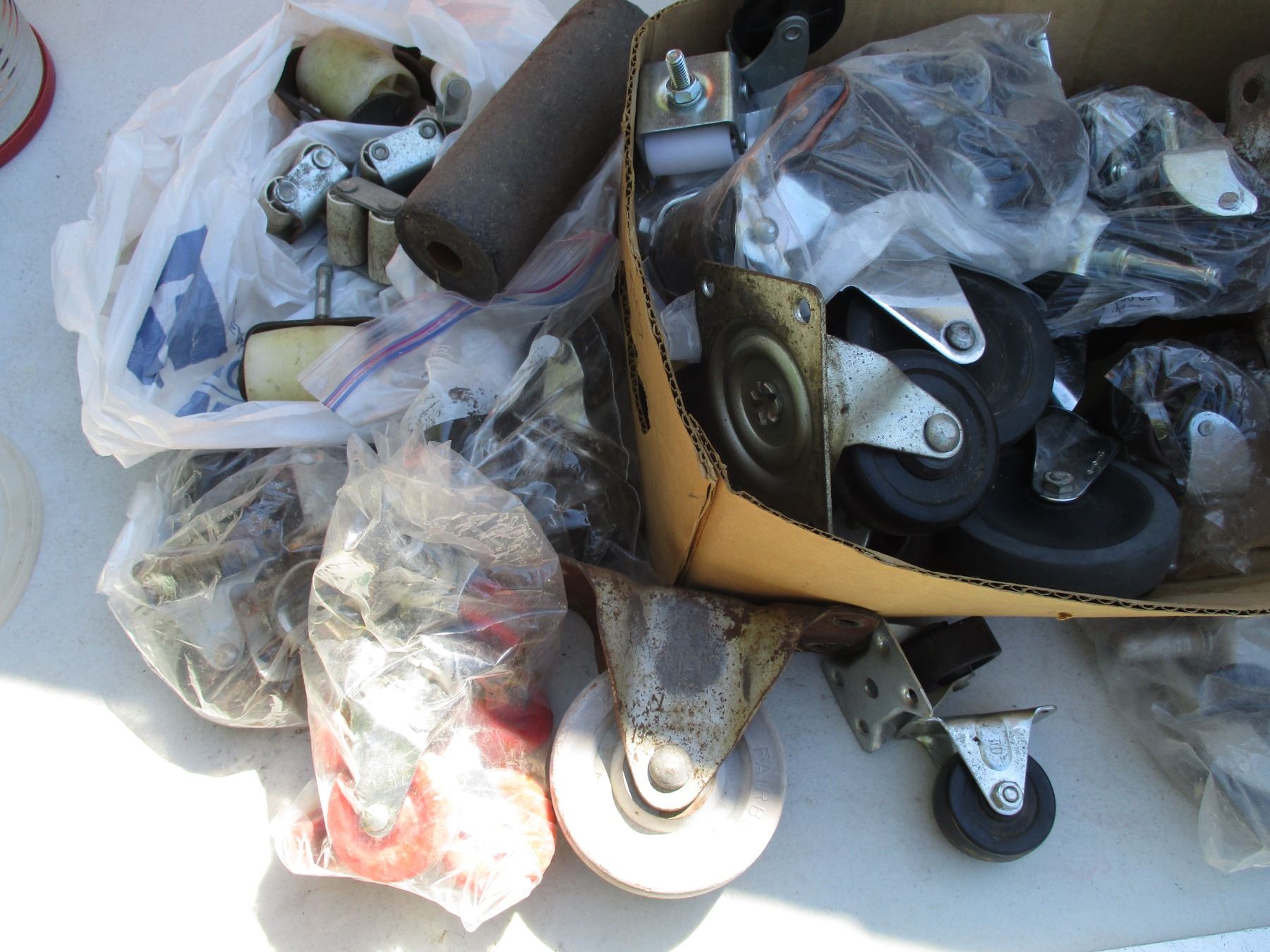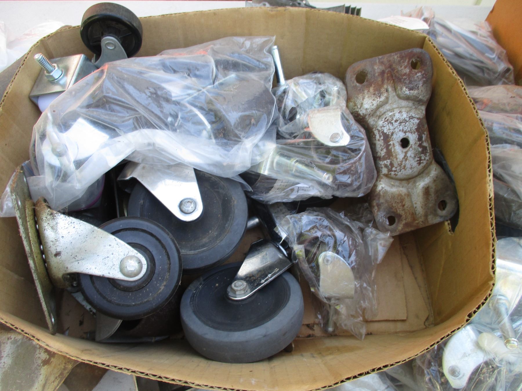 Lage Lot Of Casters of Varying Sizes/Styles, Gutter Screws, Joist Hangers, Galvanized Strapping etc..