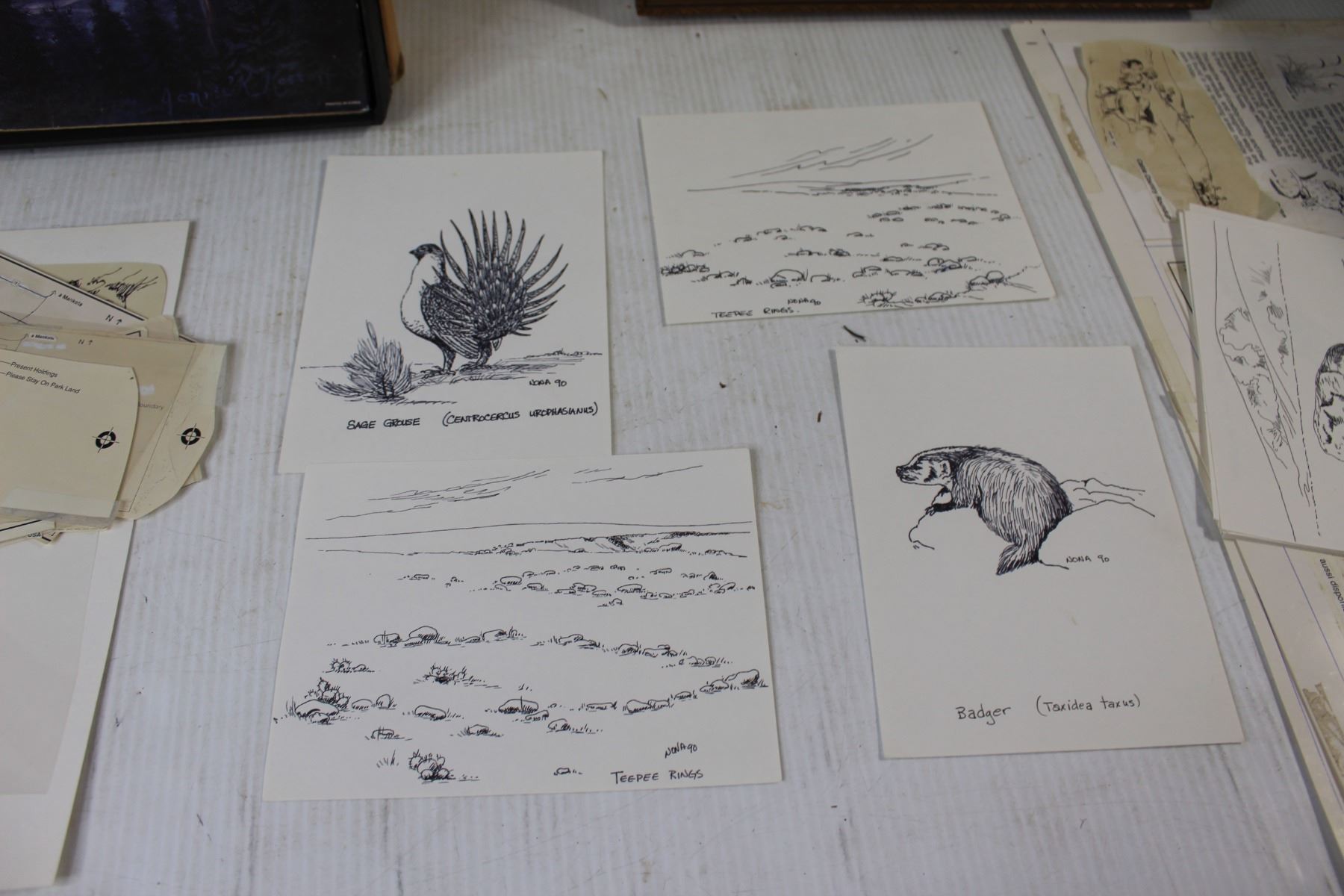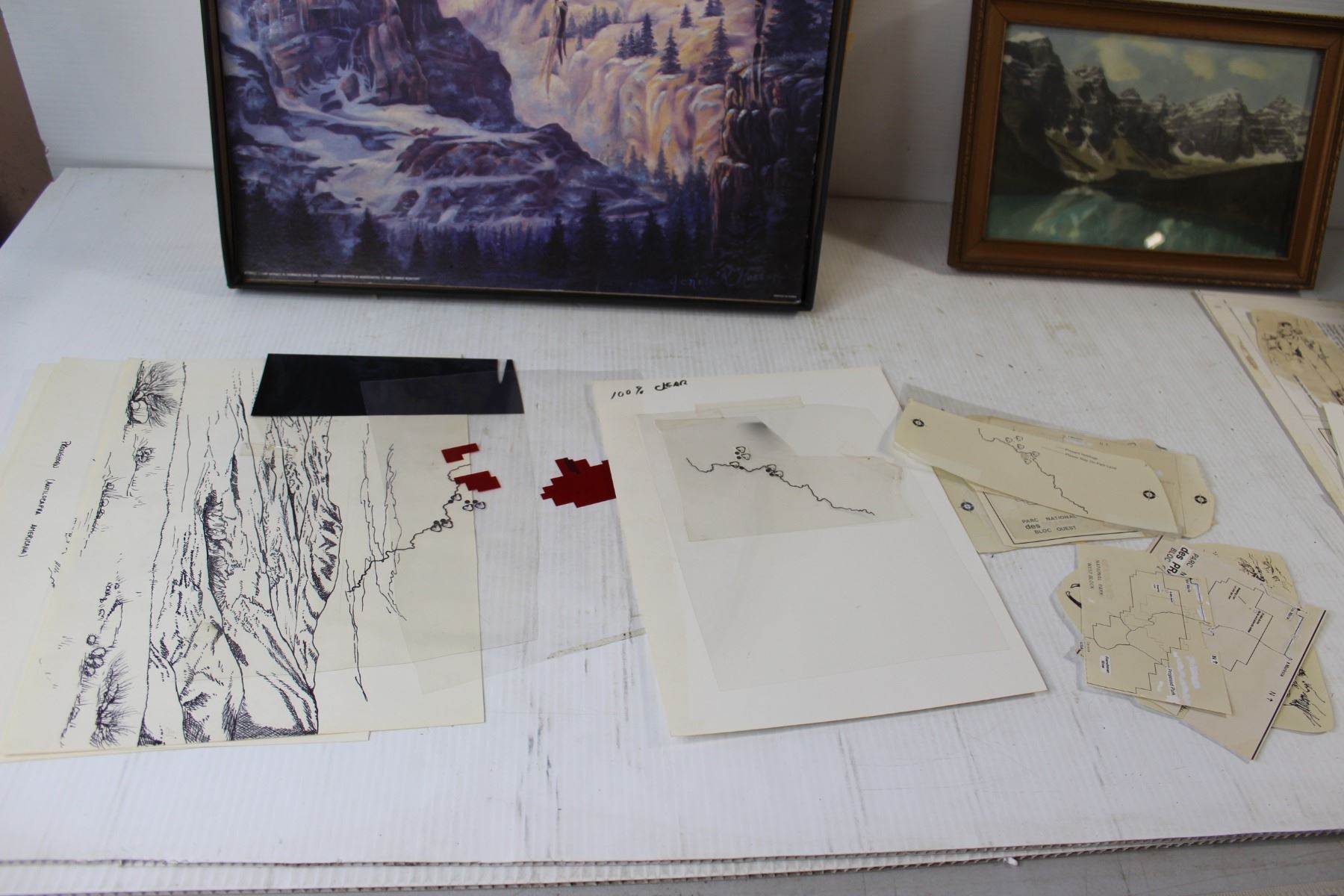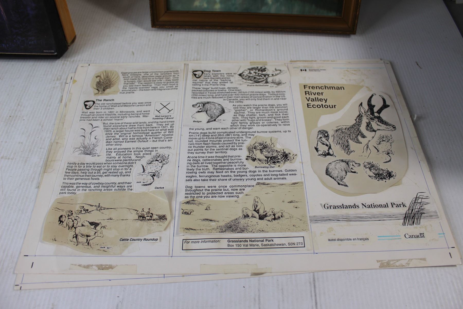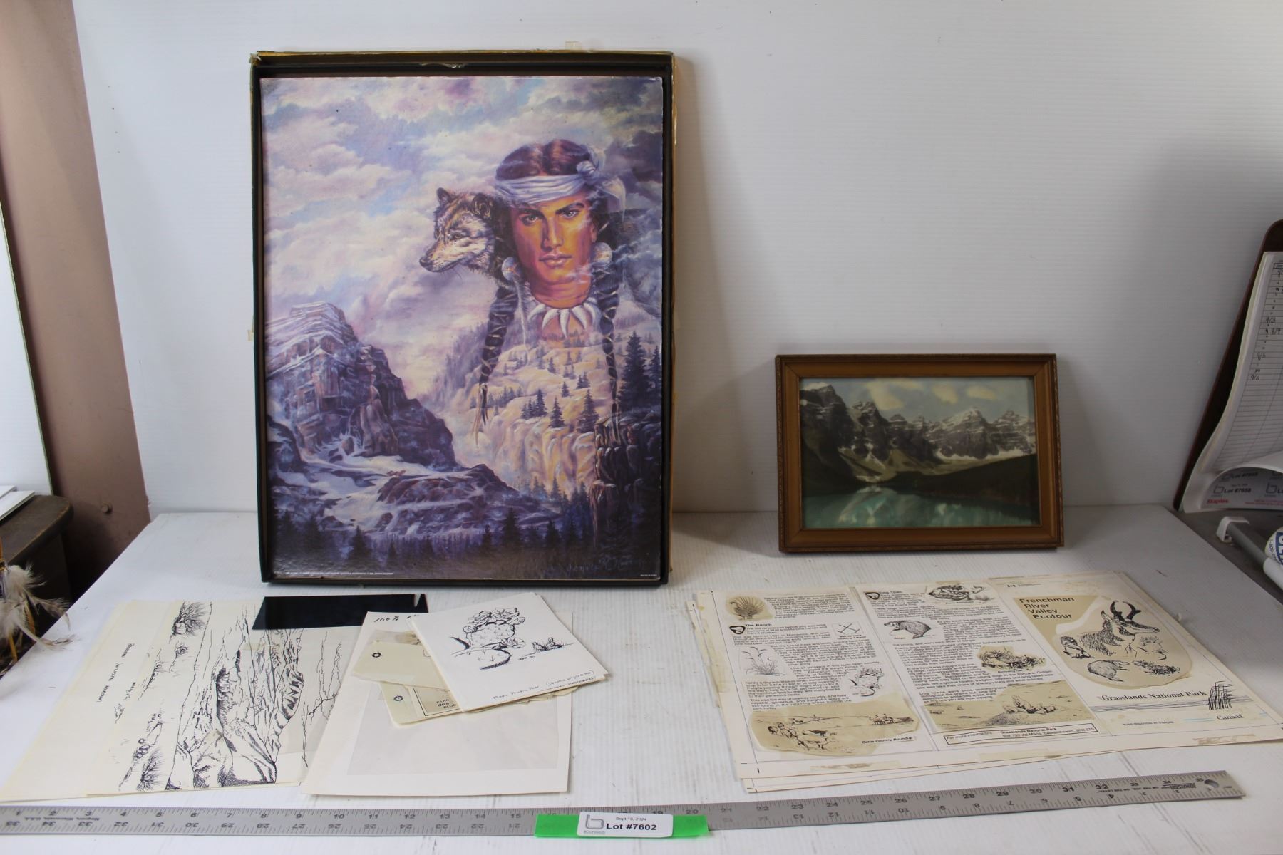 Lake Louise Photograph Art - 12 1/2" x 8 3/4", Indigenous Art - 16" x 20", Grasslands National Park brochures, Assorted Land and Plants Drawings/Paperwork