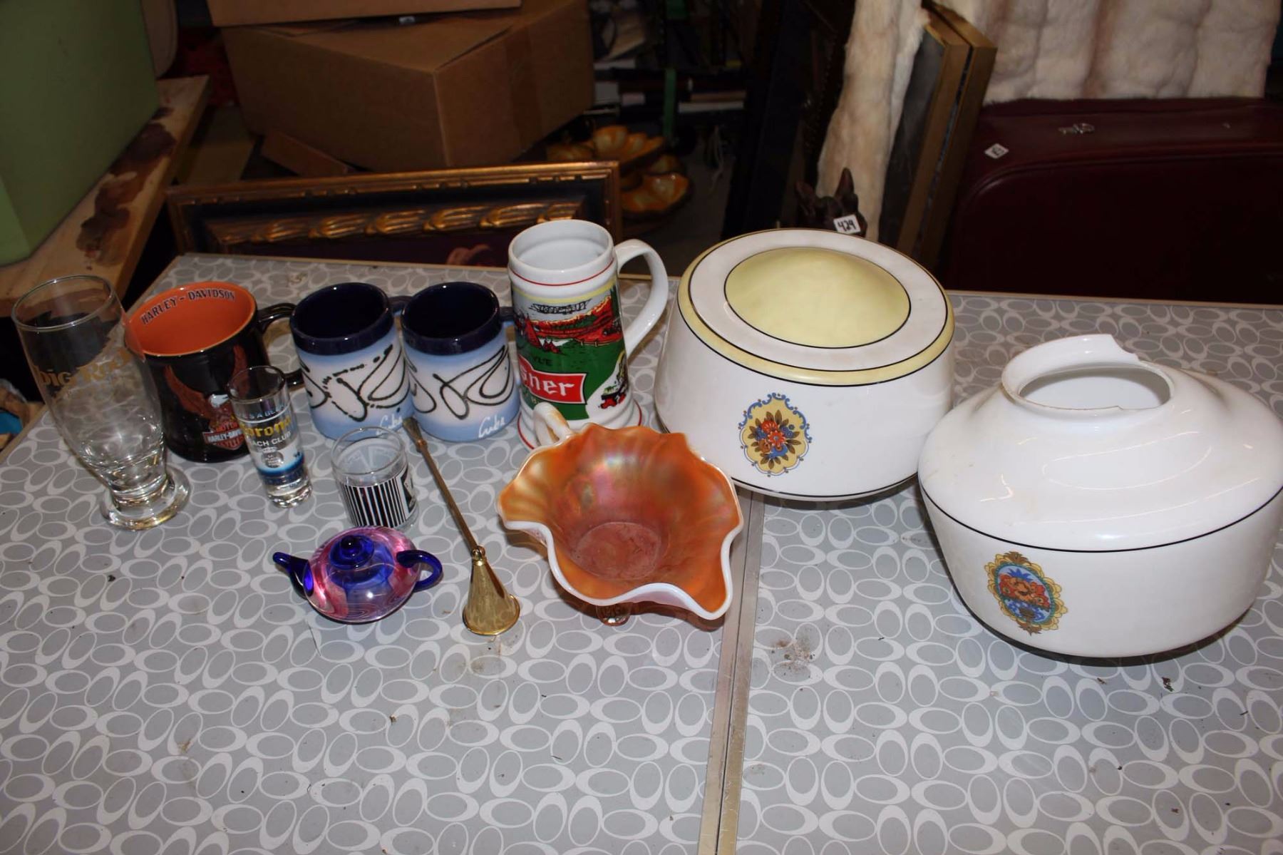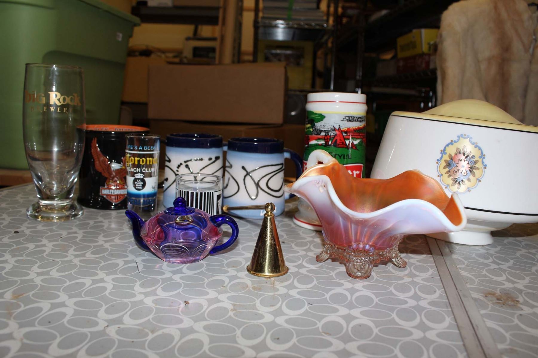 Lamp Shades(2), Decorative Bowl, Glass Tea Pot, Assorted Mugs, Etc