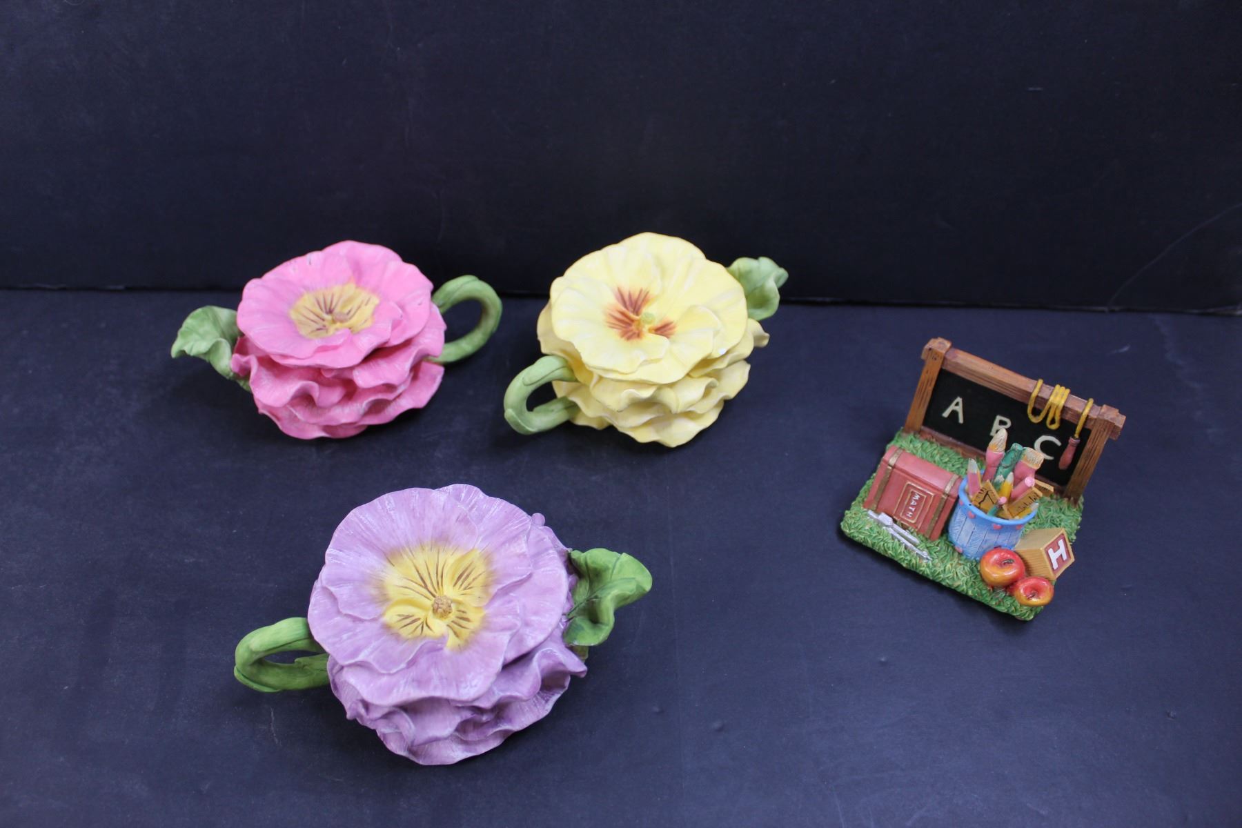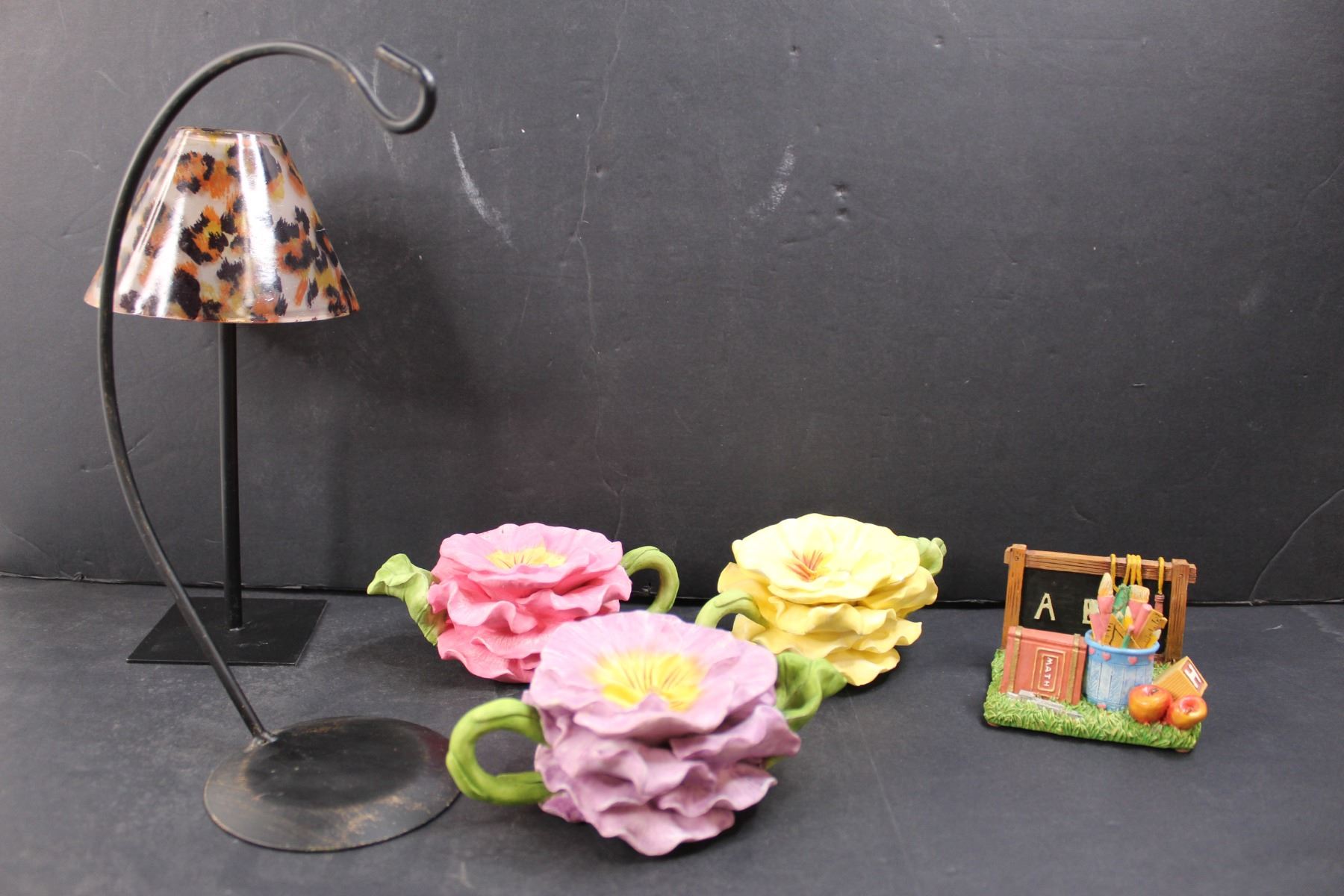 Lamp Style Candle Holder w/ Candle, Various Flower Ornaments, And Other Ornaments