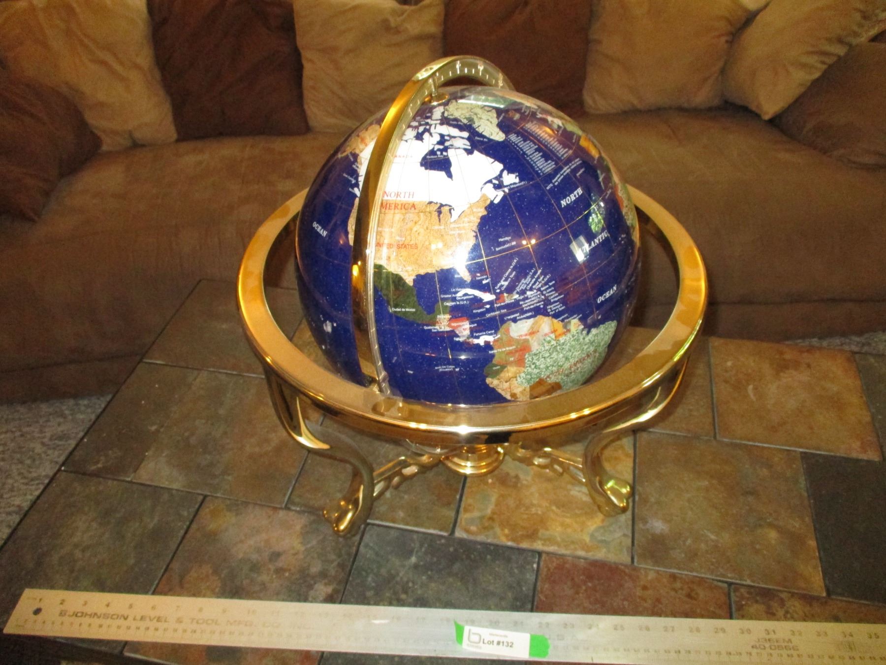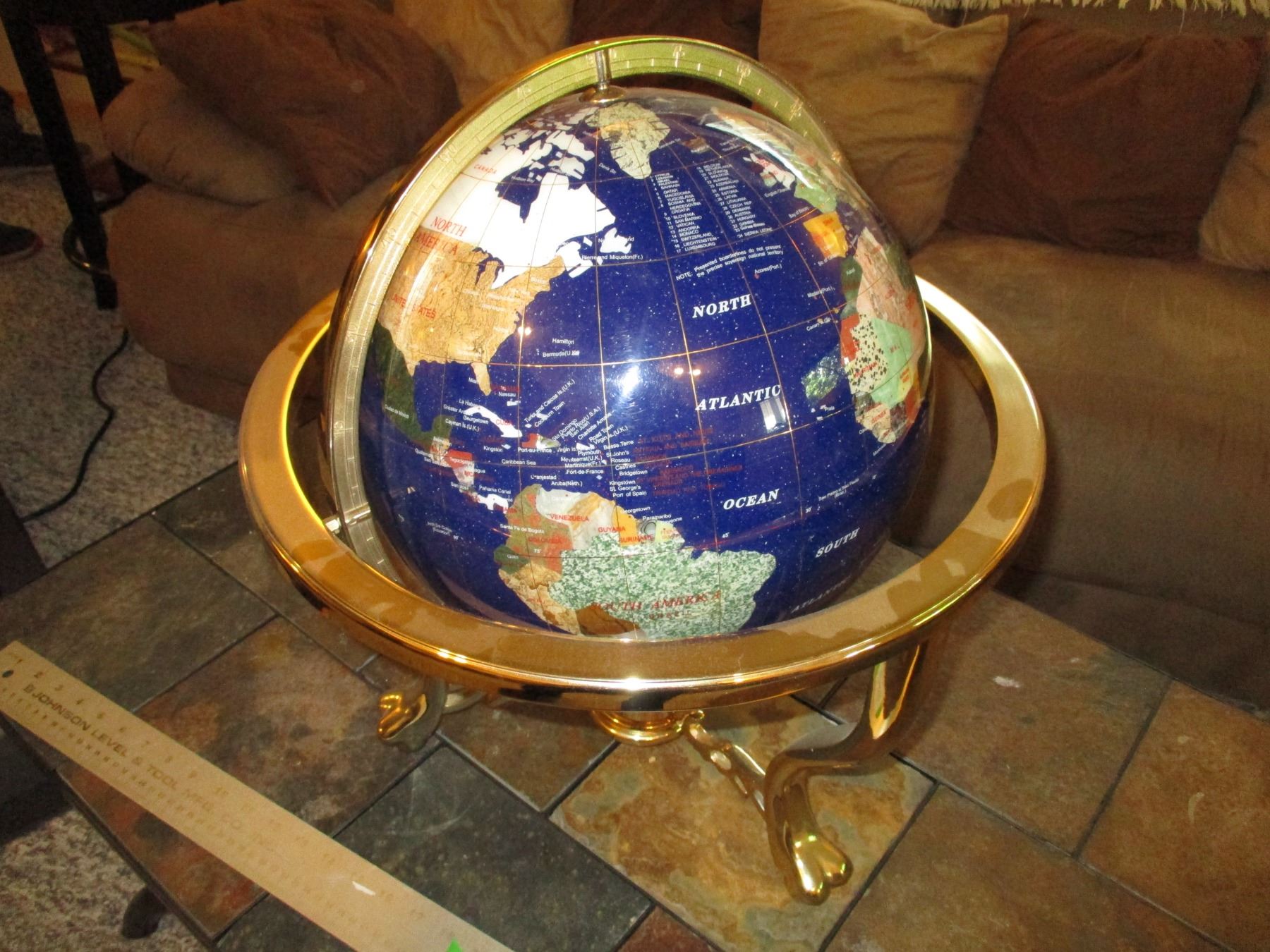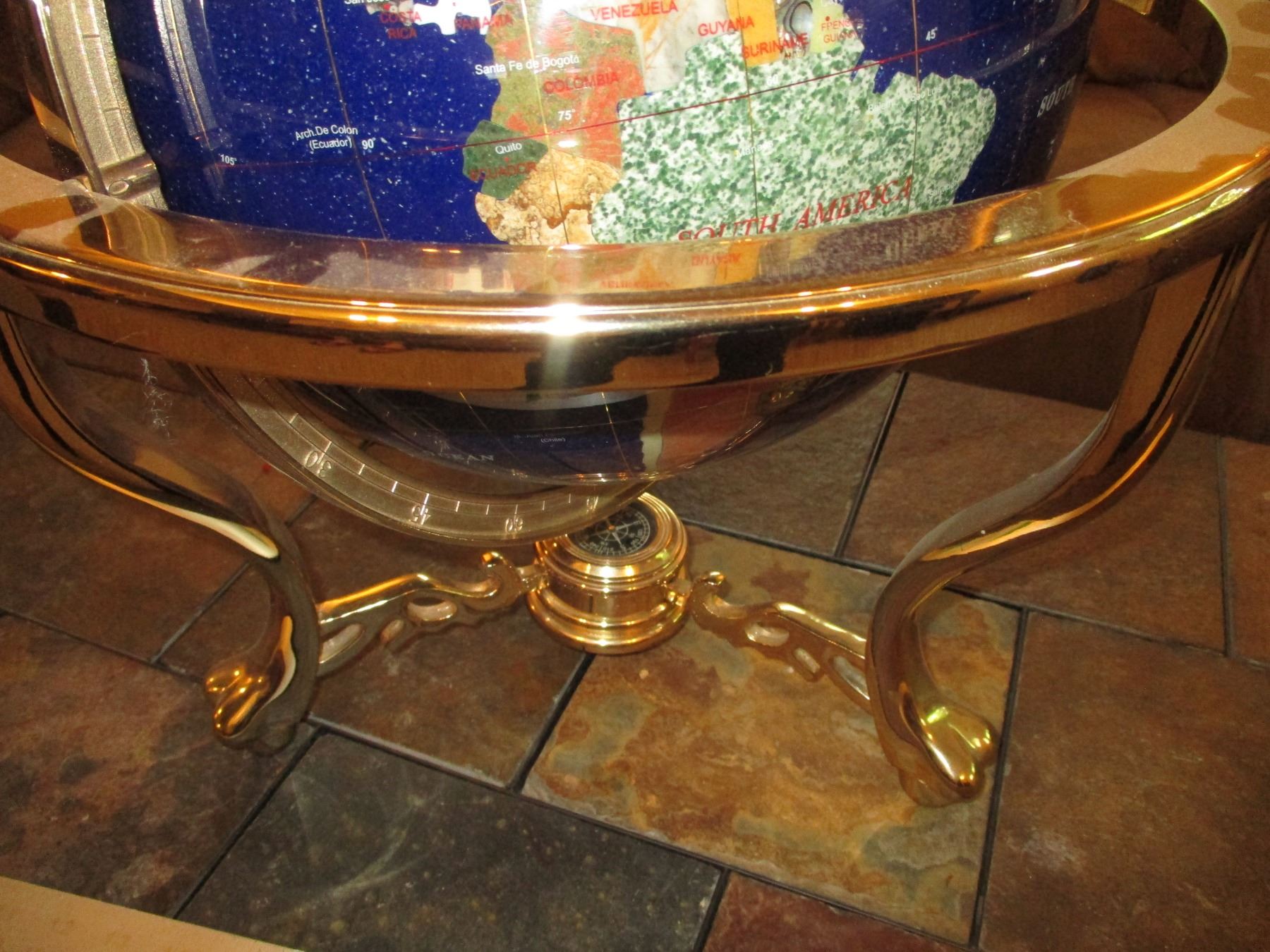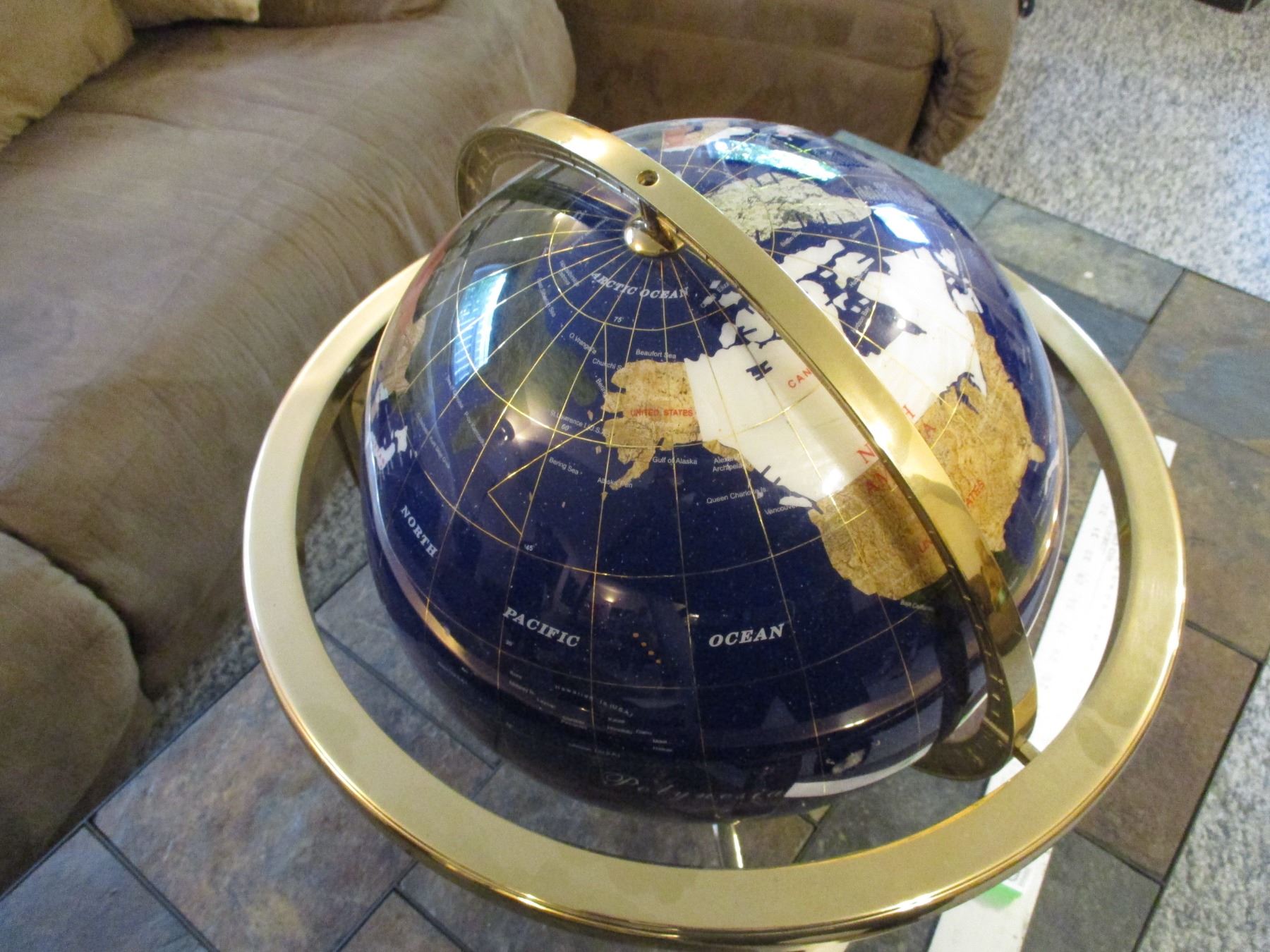 Lapis Semi Precious Stone Inlay World Globe w/Brass Stand